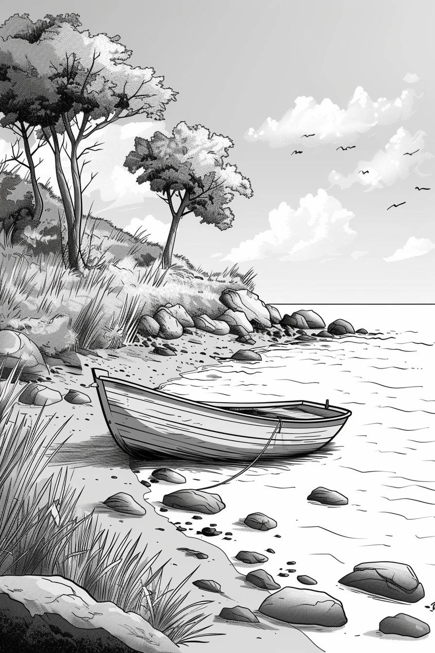 Создайте простой рисунок линейного искусства, изображающий повседневную сцену или объект. Используйте чистые, непрерывные линии и минимальное затенение, чтобы подчеркнуть простоту и элегантность.