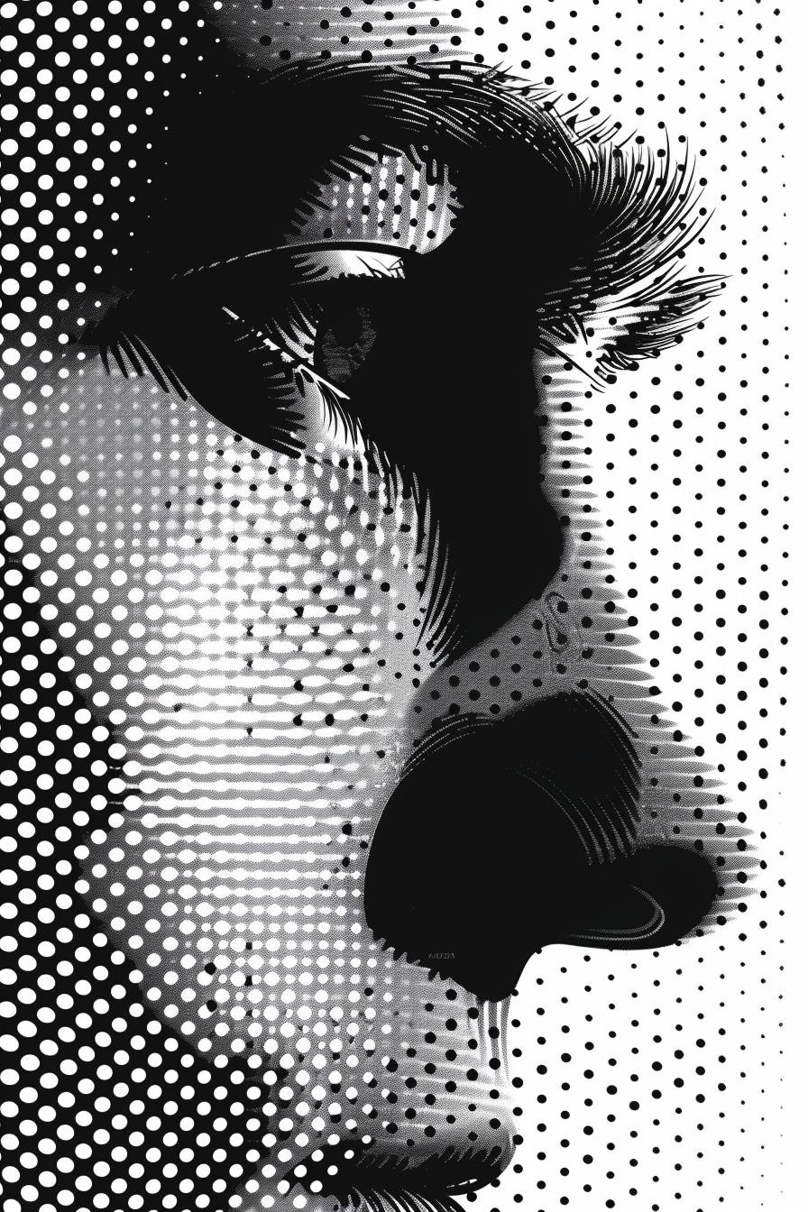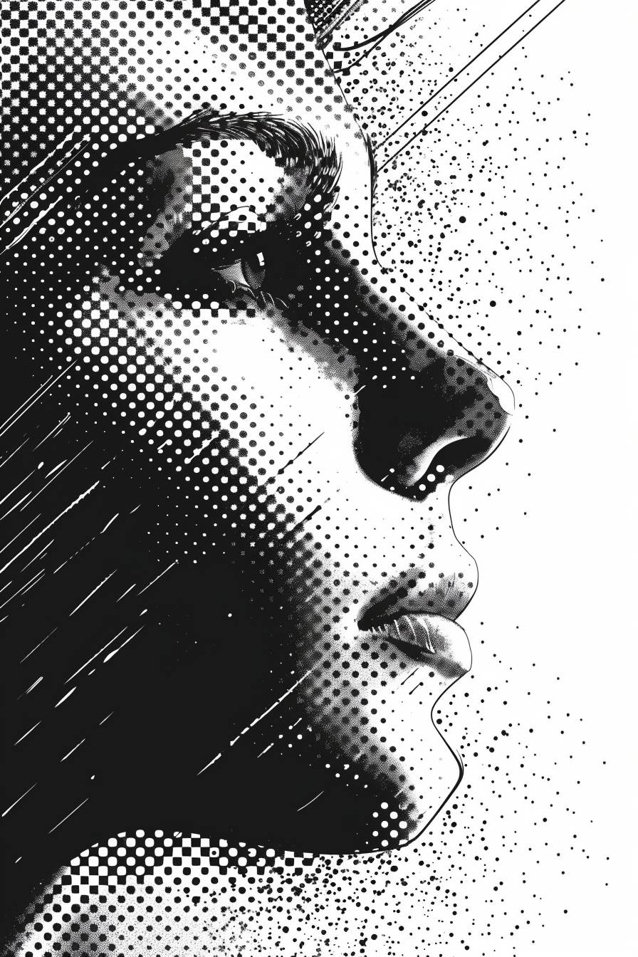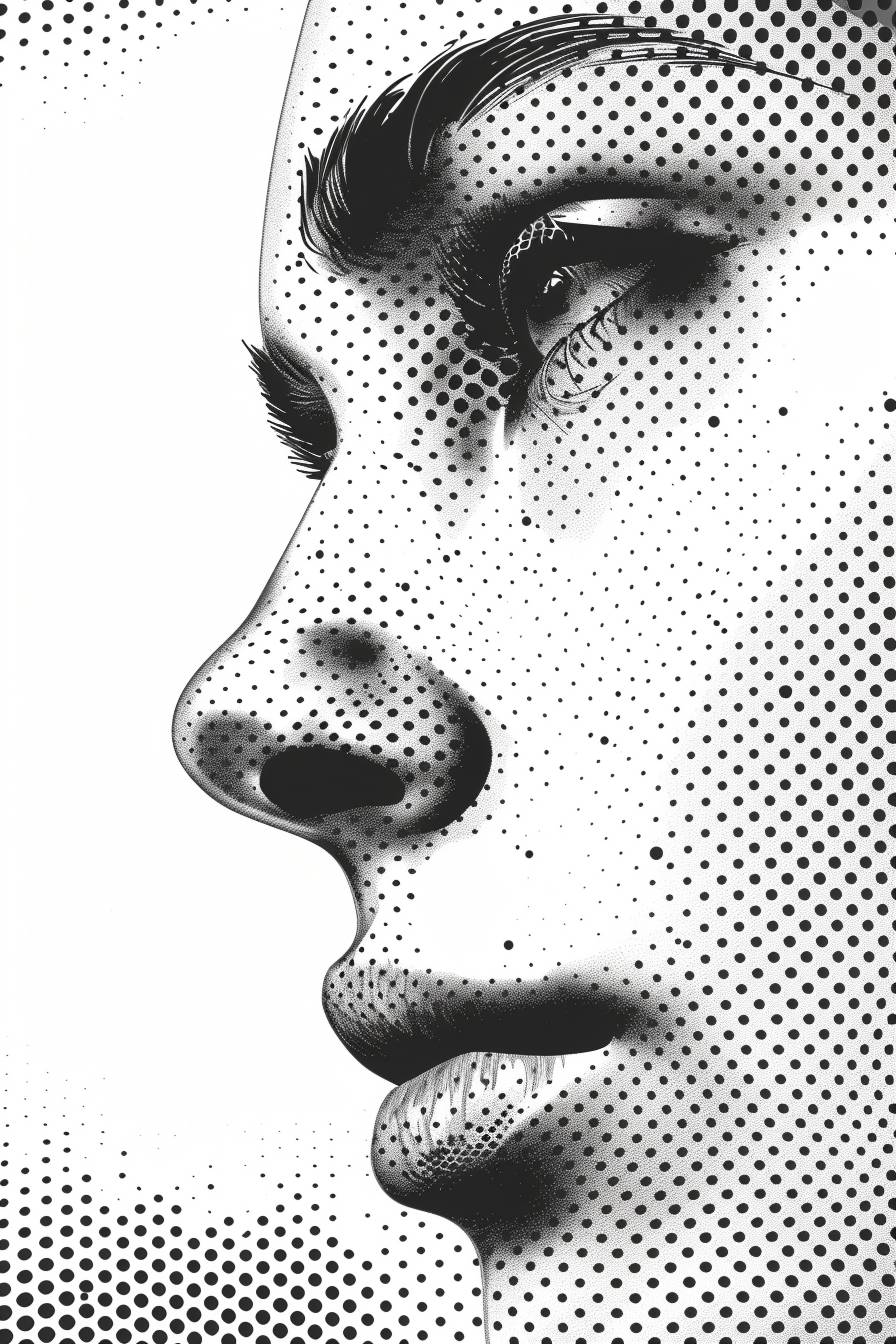 Иллюстрация полутоном лица и глаз в профиль