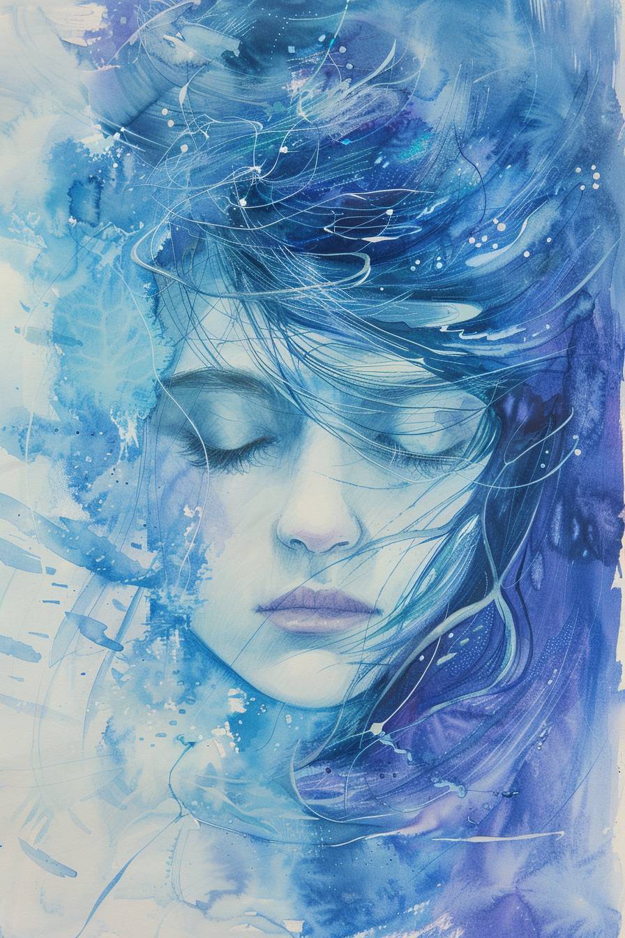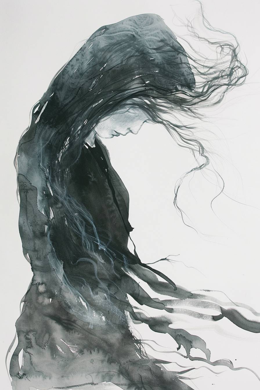 Акварельная живопись, элегантная и тонкая иллюстрация, выражающая одиночество и меланхолию
