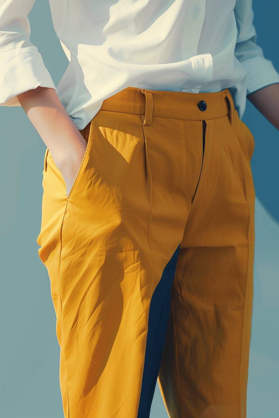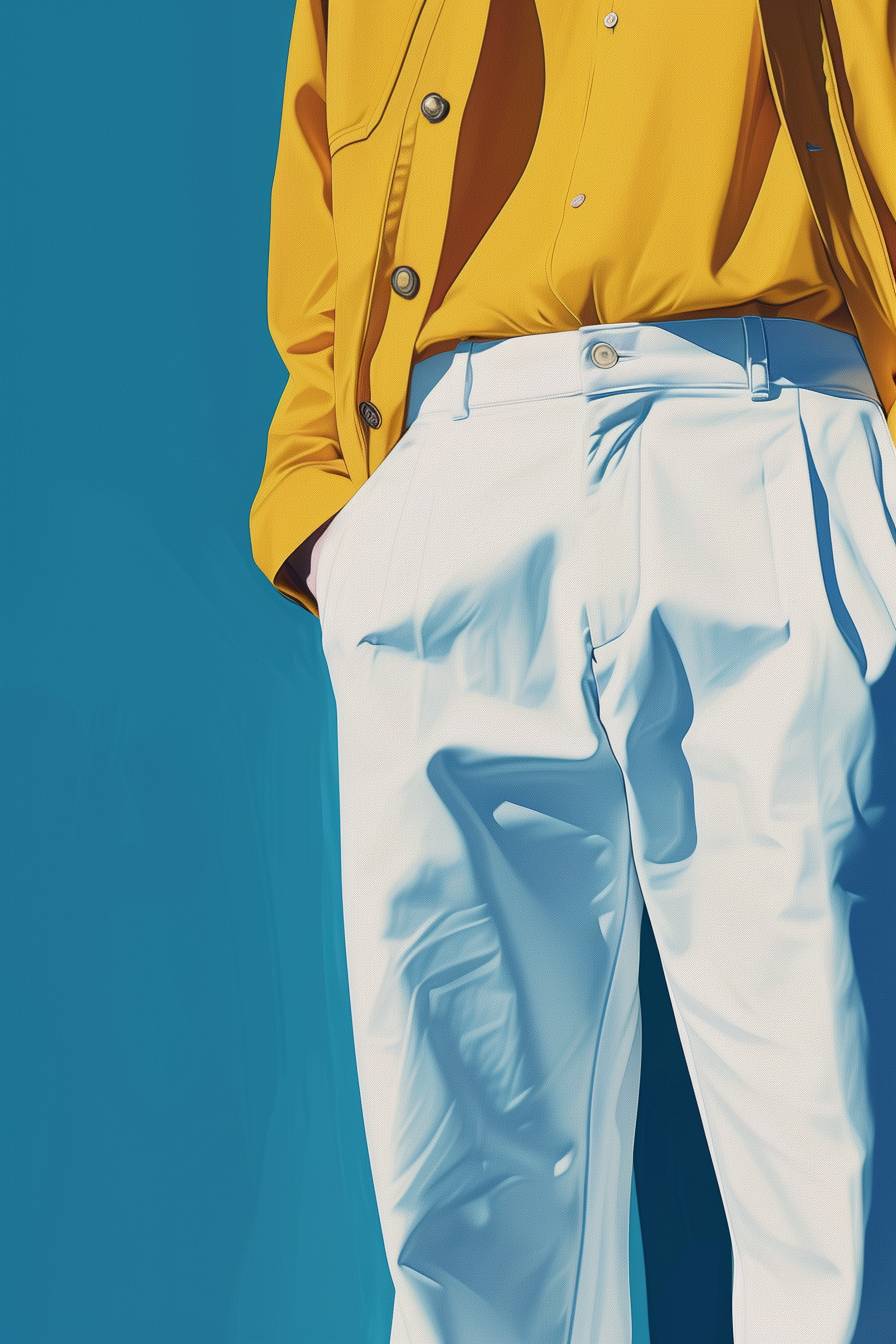 a minimalist rendered smooth texture person wearing white, light blue, yellow, navy blue, business casual clothing --ar 2:3 --v 6.0