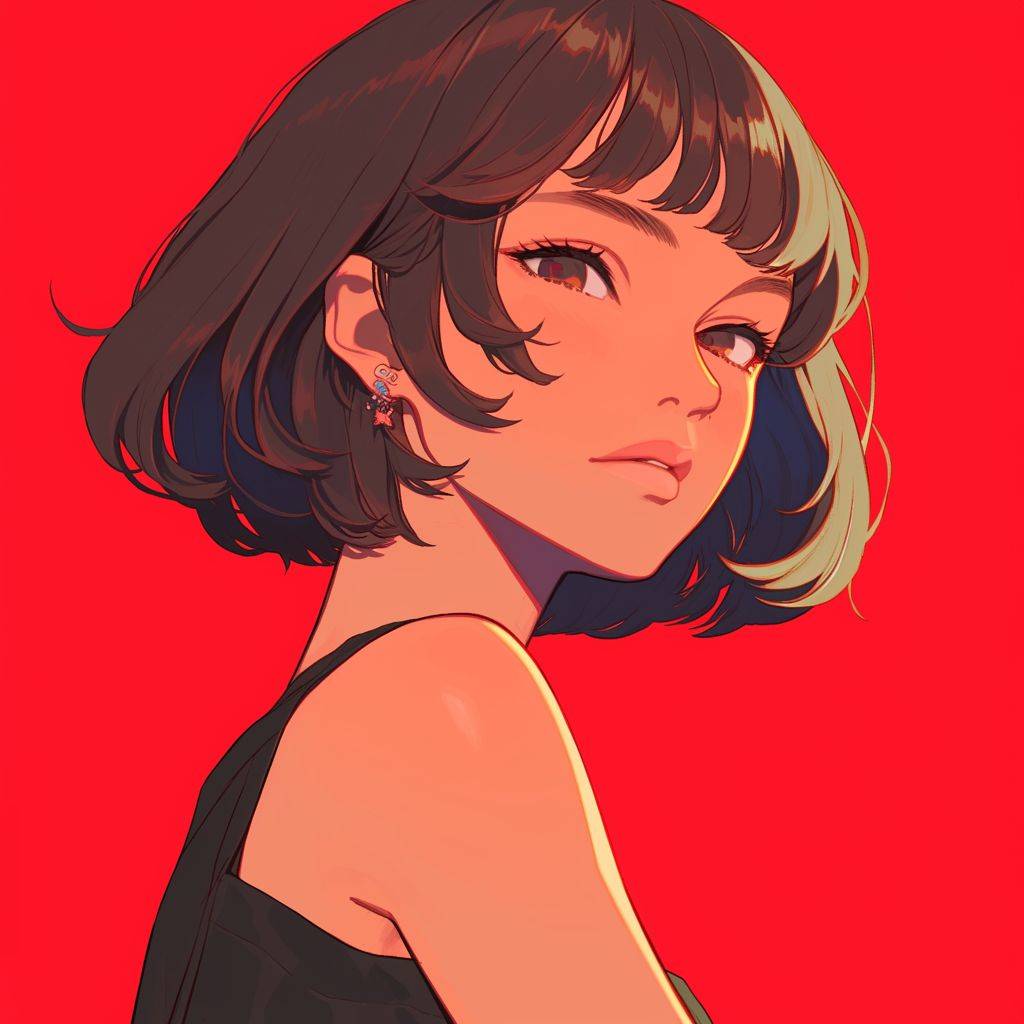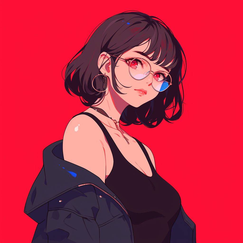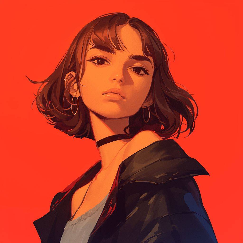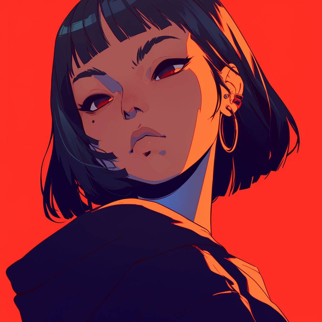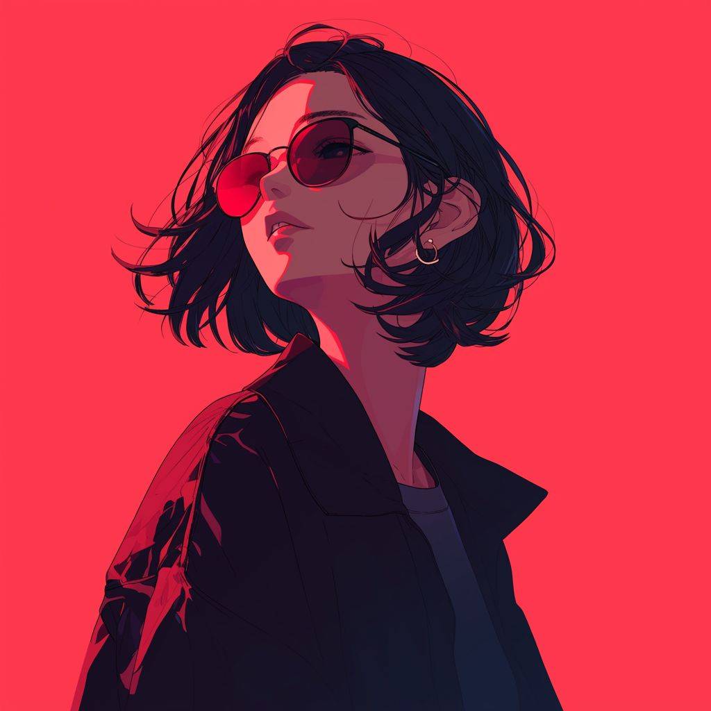Вид спереди, крутая девушка, красный фон