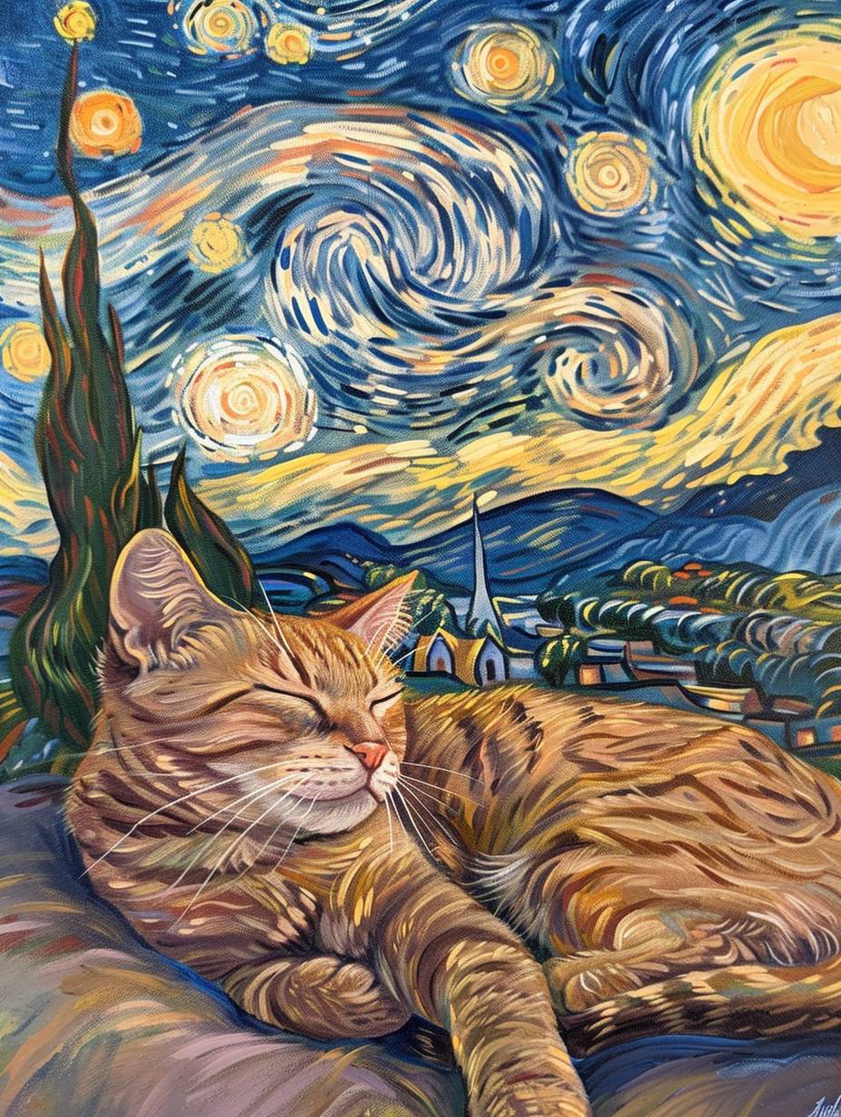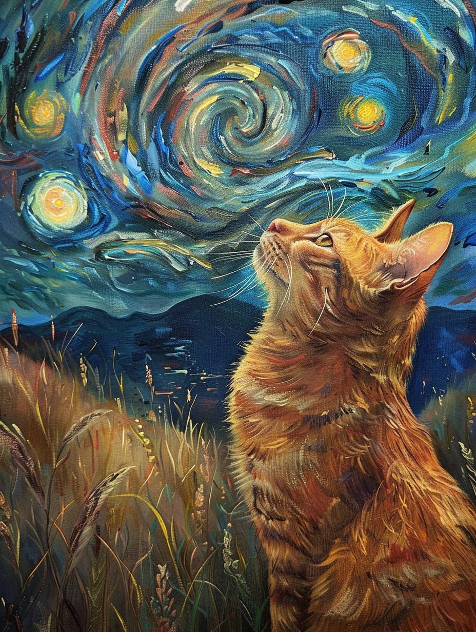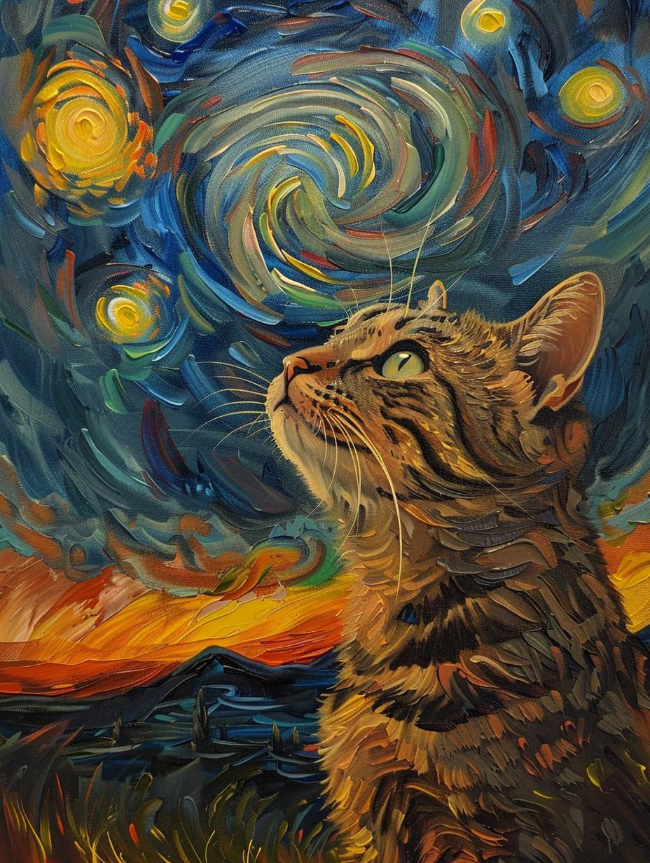 Картина с тигровой кошкой в стиле известной художественной работы Ван Гога