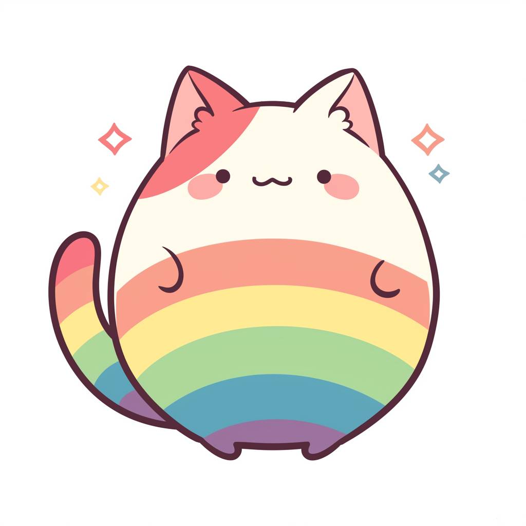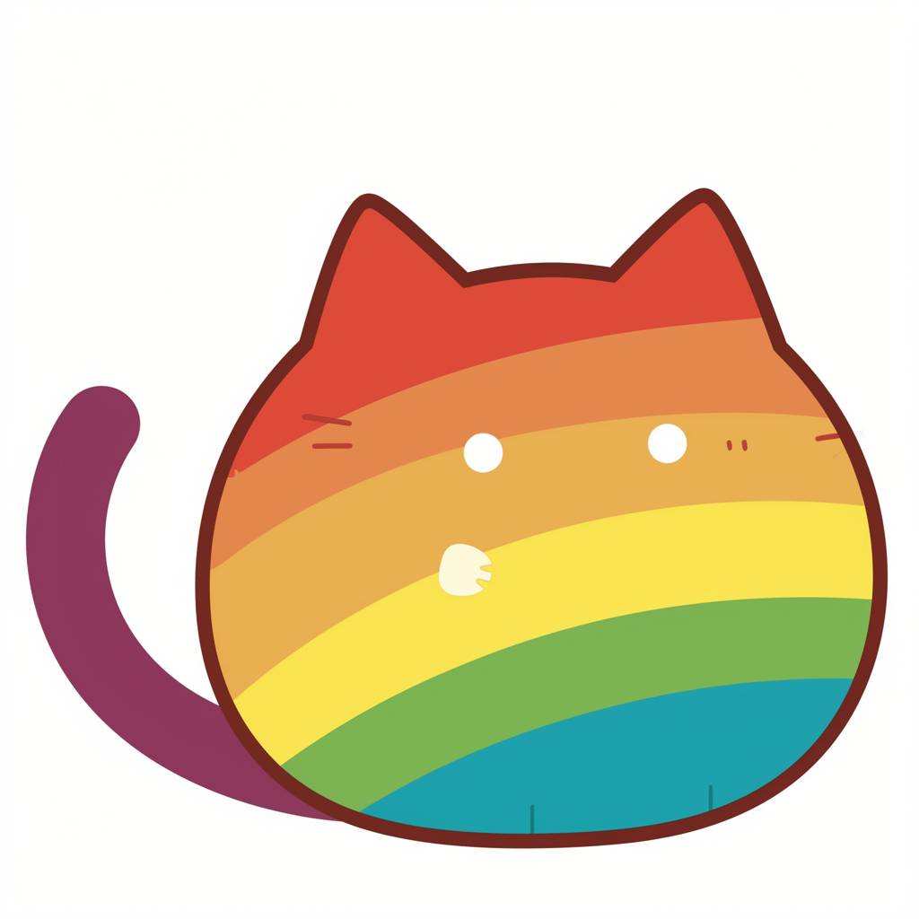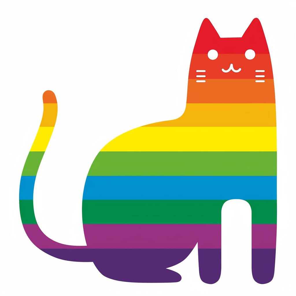 Простой векторный логотип радужного кота на белом фоне в стиле Элли Брош.