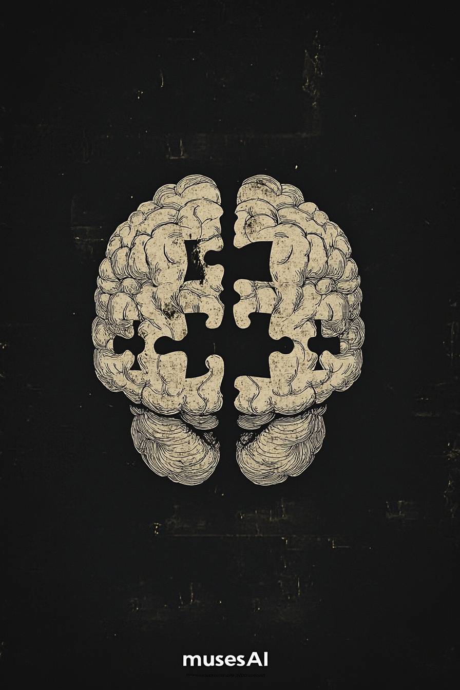 Book cover, Logo related to the brain and finance, Minimalism, minimalistic core style, Puzzles, "musesAI" --ar 2:3 --v 6.1