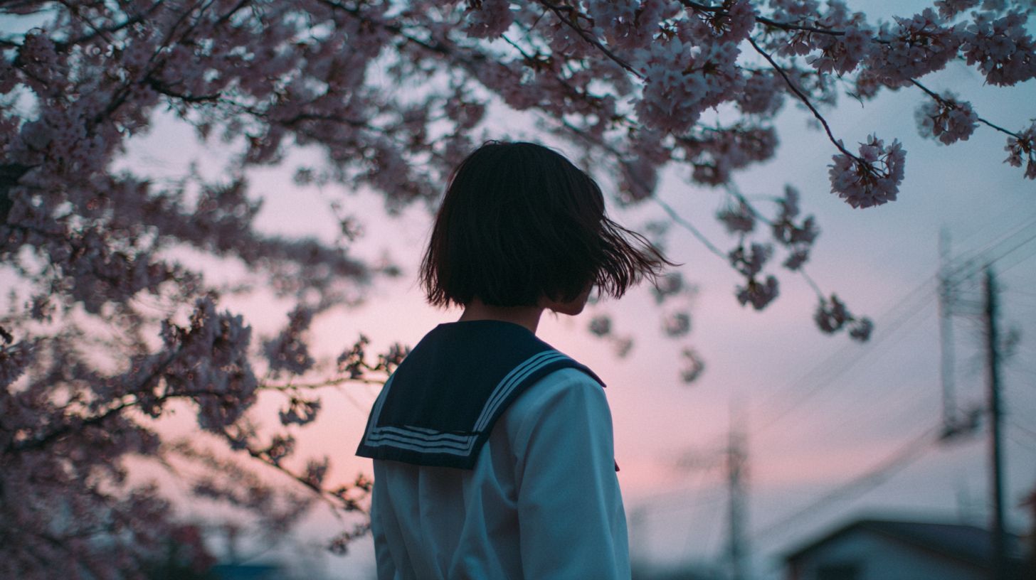 The painting presents a stylized portrait of a woman with a distinct Art Deco influence. She is depicted with a short, sleek, black bob haircut, a classic characteristic of the era. The woman is dressed in a black garment featuring puffy sleeves, likely suggesting an evening gown or a similarly formal attire. Her skin is rendered in a warm yellow hue, a color choice that creates a striking contrast against the black of her dress and hair. The background consists of broad brushstrokes of green foliage set against a soft, pink backdrop. The style is characterized by its simplified forms, bold colors, and strong lines. The palette is limited and harmonious, with the interplay of pink, yellow, green, and black creating a visually arresting composition. The piece evokes the elegance, sophistication, and streamlined aesthetic synonymous with Art Deco design.