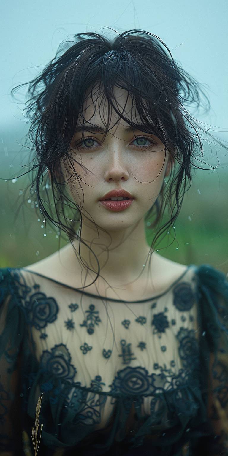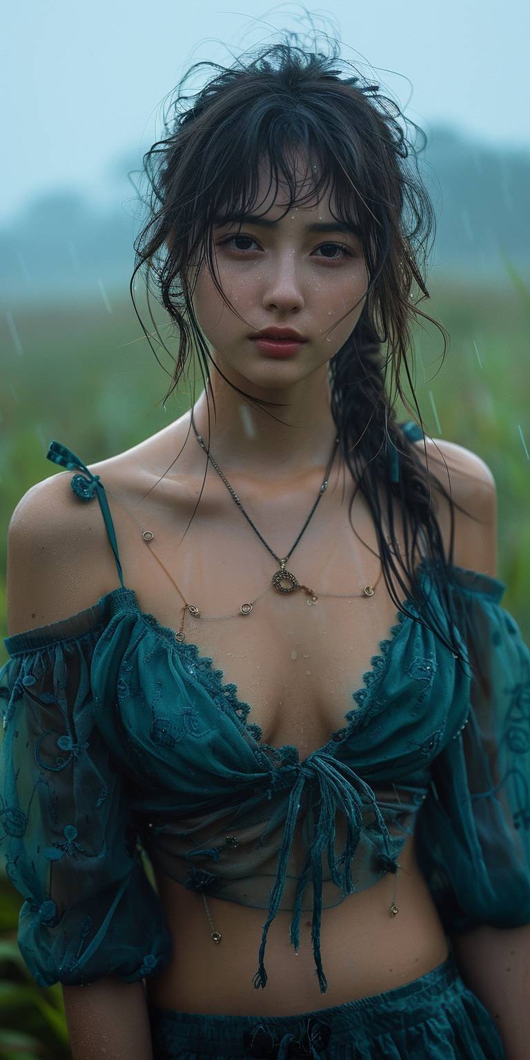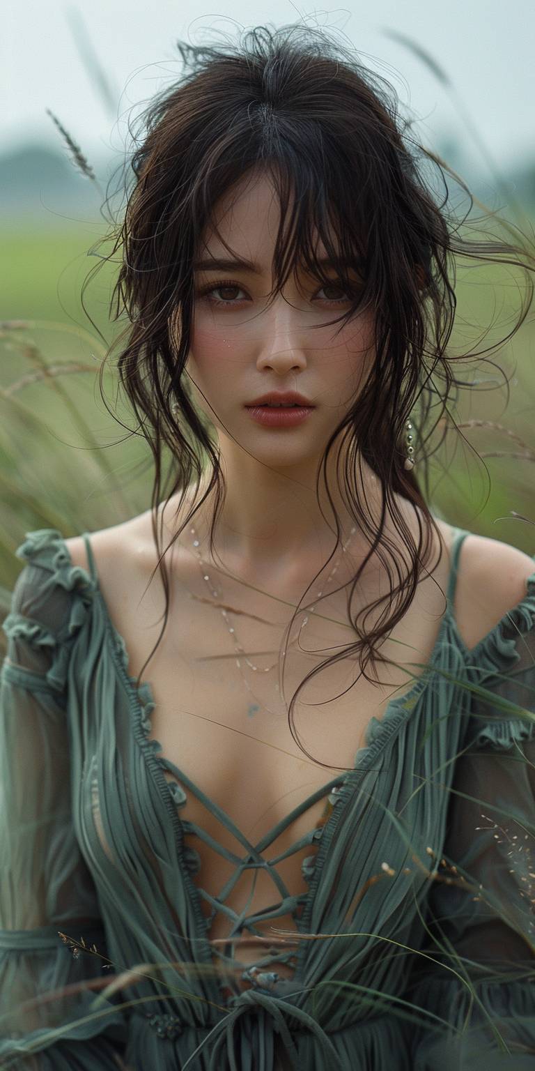 Cinematic, documentary photography, Japanese model, 20-25 years old, full body picture, photorealistic, high detail, shot on an ARRIFLEX 35 BL Camera, Canon K35 Prime Lenses, ethereal landscape, 70mm --ar 1:2 --stylize 1000 --v 6.0
