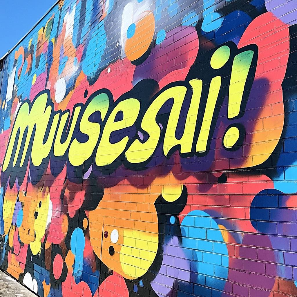 涂鸦,上面写着“musesai!” 粗体,色彩丰富,平面