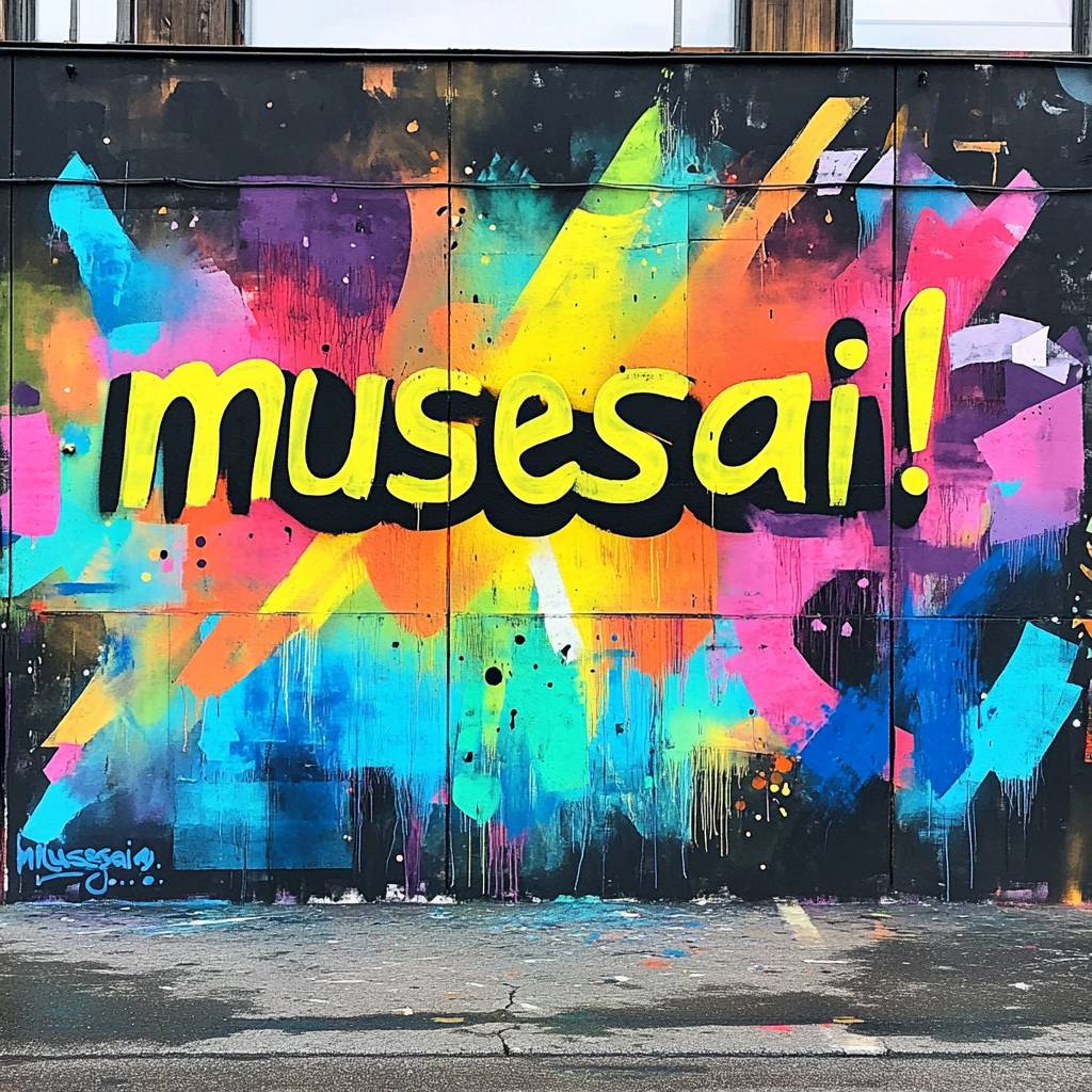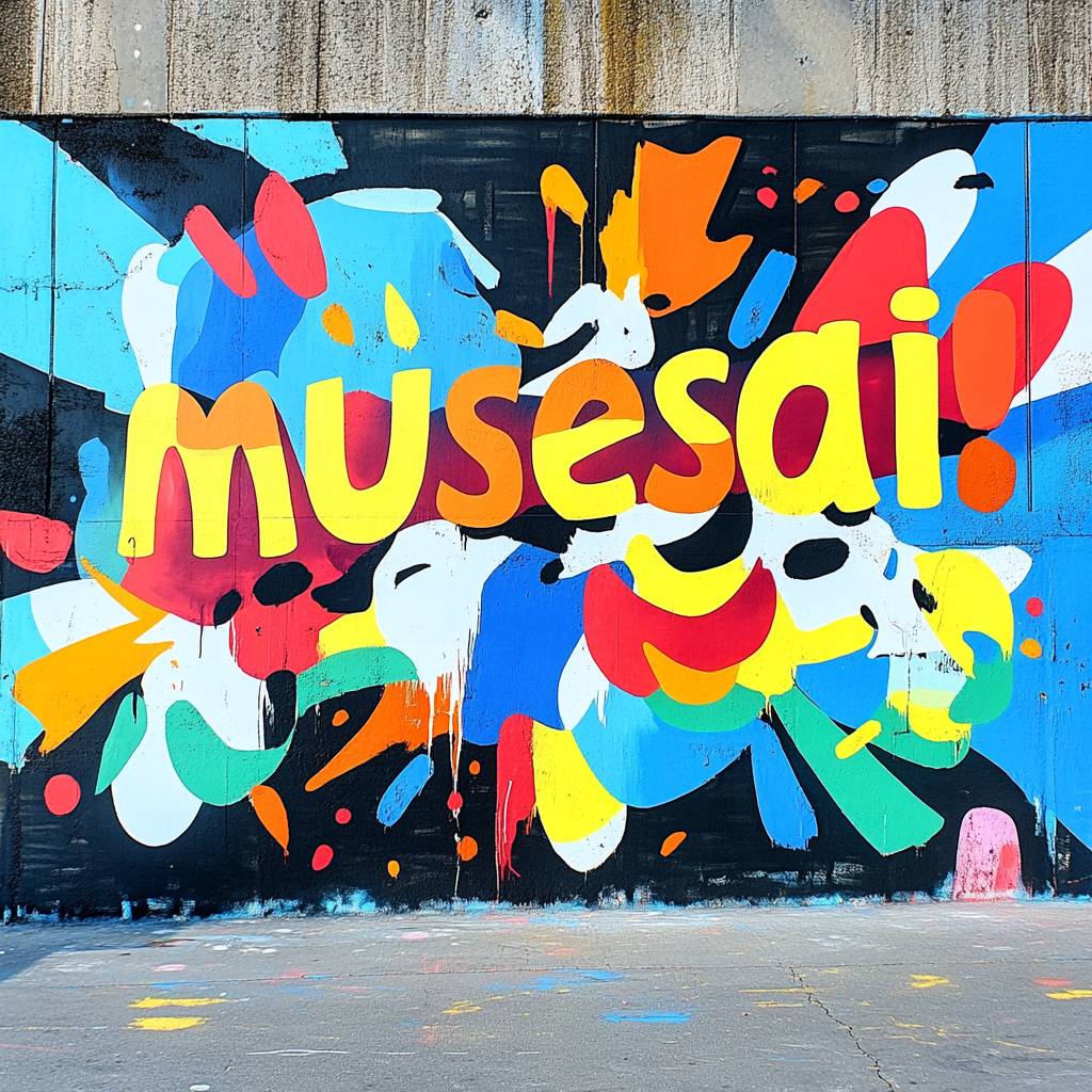 GRAFFITI THAT SAYS "musesai!" bold, colorful, flat --v 6.1
