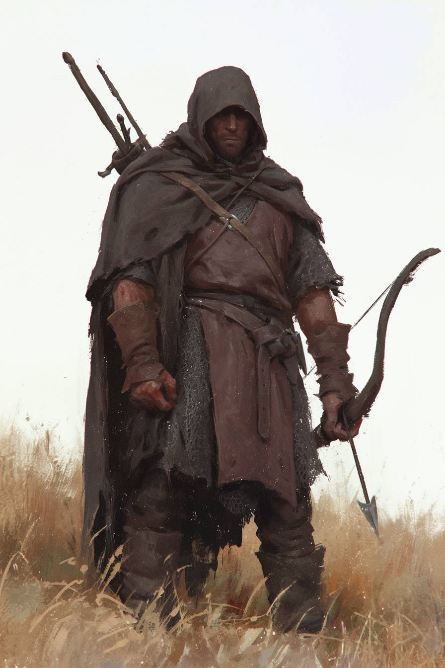 Lord of the Rings, LotR. A male heir of eregion, specially chosen for his keen eyesight. His ability to see in the dark, combined with a steady hand, allows him to fire his arrows with deadly accuracy both by night and by day. Dynamic pose. Full body visible, style of Martin Grip, style of Richard Anderson. Light background, isolated. pale palette --chaos 7 --ar 2:3 --personalize aur8n5d --stylize 400 --niji 6