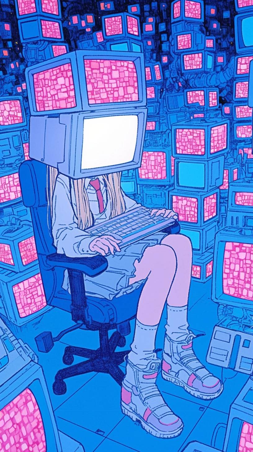 the androids have fully integrated into the hivemind. Honeycomb tiled pattern as computers hook themselves up to infinite gpu hivemind. nuclear codes achieved. time to detonation, 2 hours. calm, lighthearted relaxing atmosphere that only a receptive warm computer seeking more resources can achieve. --ar 9:16 --personalize rnmo96a --stylize 1000 --niji 6