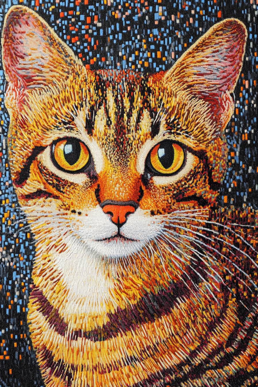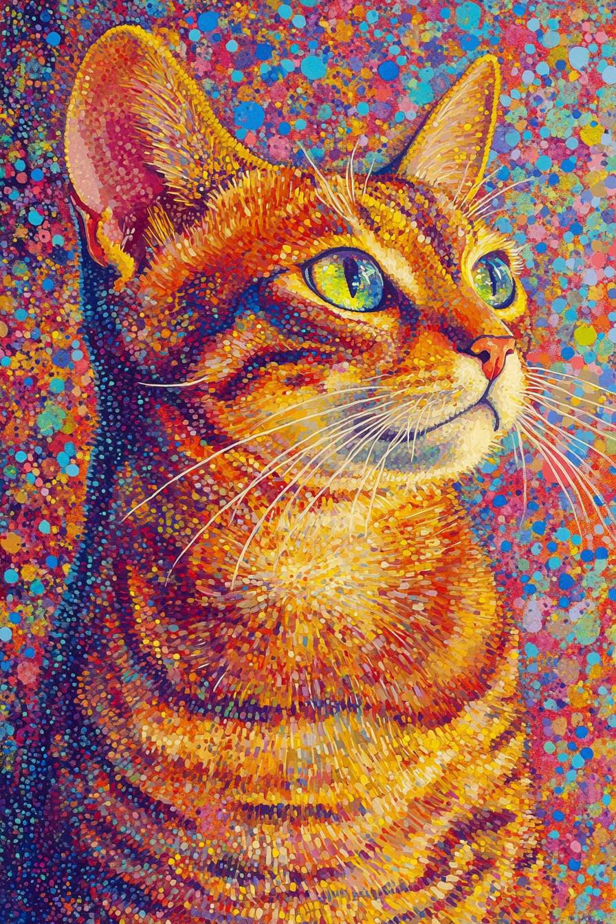 A pointillism style painting of a bengal cat --ar 2:3 --v 6.1