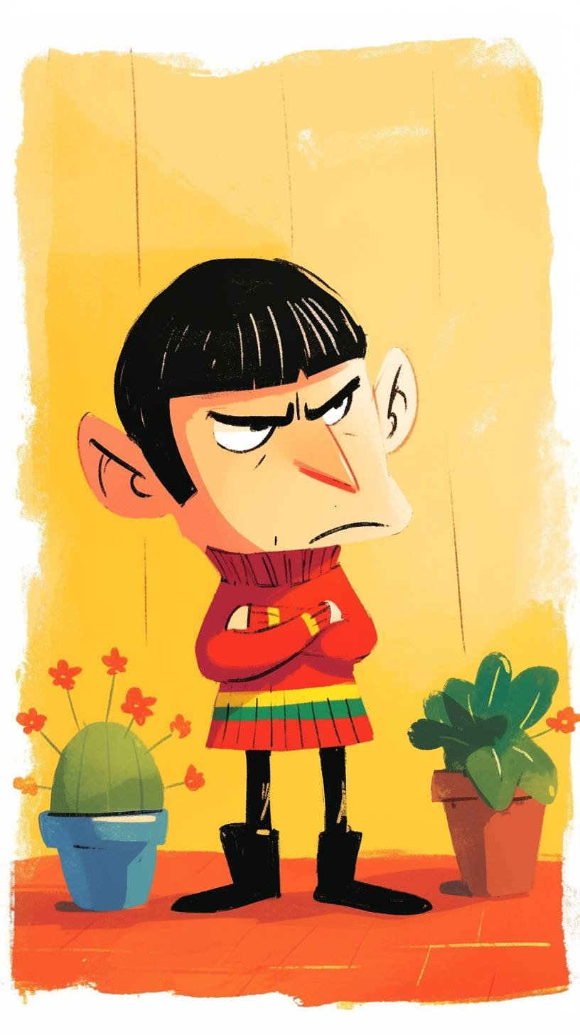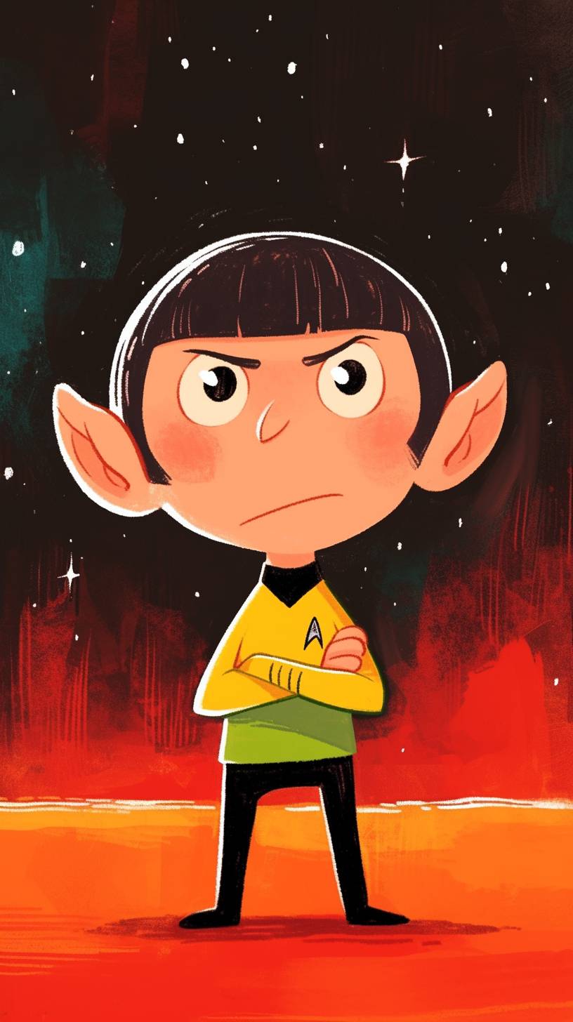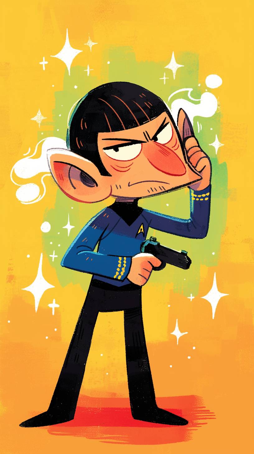 a cartoon of Spock, in the style of jim woodring --ar 9:16 --style raw --sref 1400853173 --niji 6