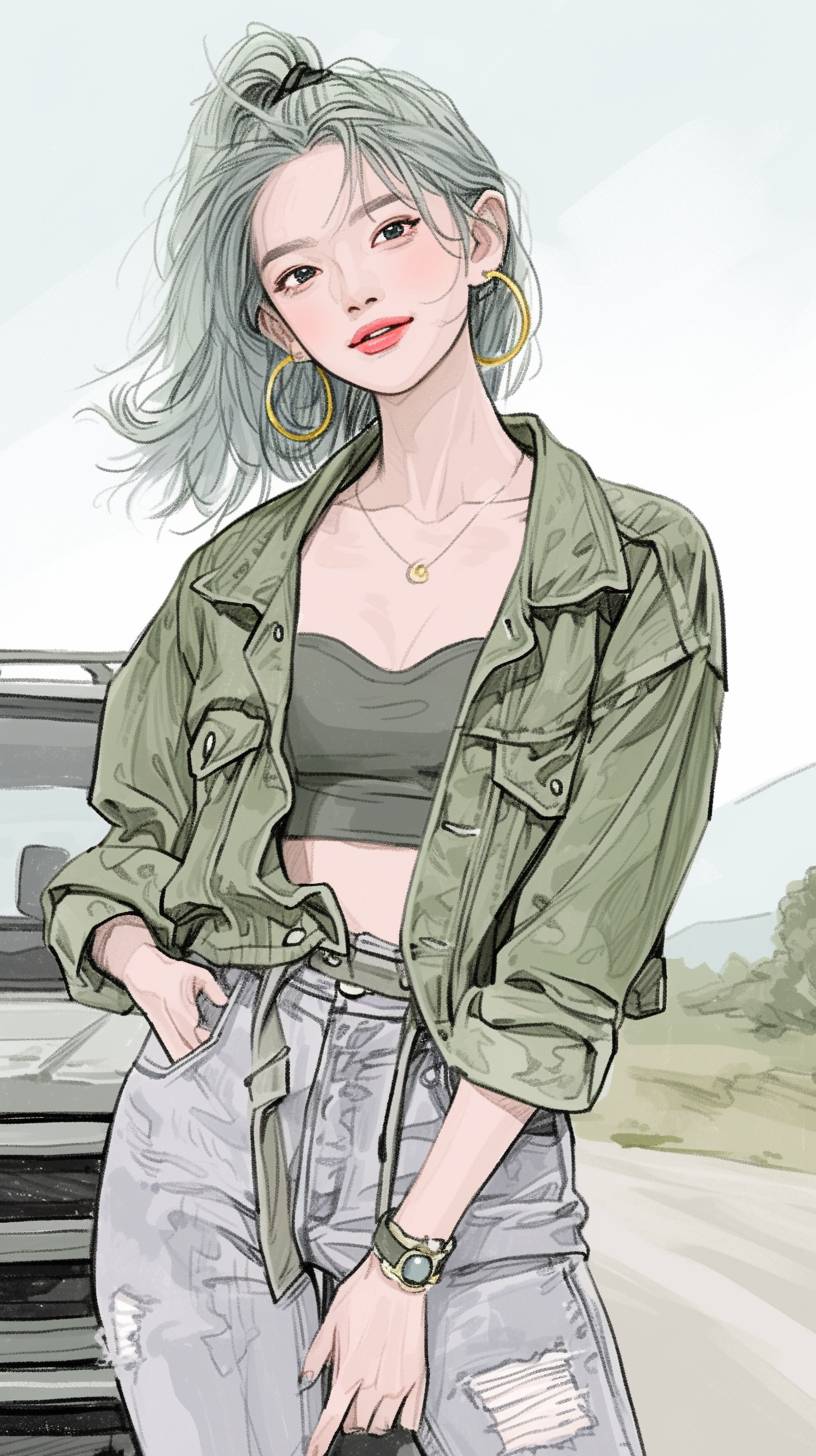 dragon ball super character Bulma, in the style of hajime sorayama, textured surface layers, gold and emerald, dynamic outdoor shots, realist detail, expansive skies --ar 9:16 --style raw --sref 3619696030 --niji 6