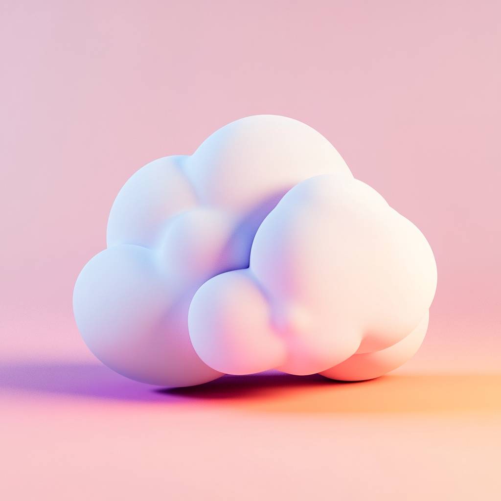 A 3D cloud icon, white, minimalist, regular graphics, front image, Soft gradient, 3D style, C4D, blender, oc renderer image --ar 1:1 --v 6.1