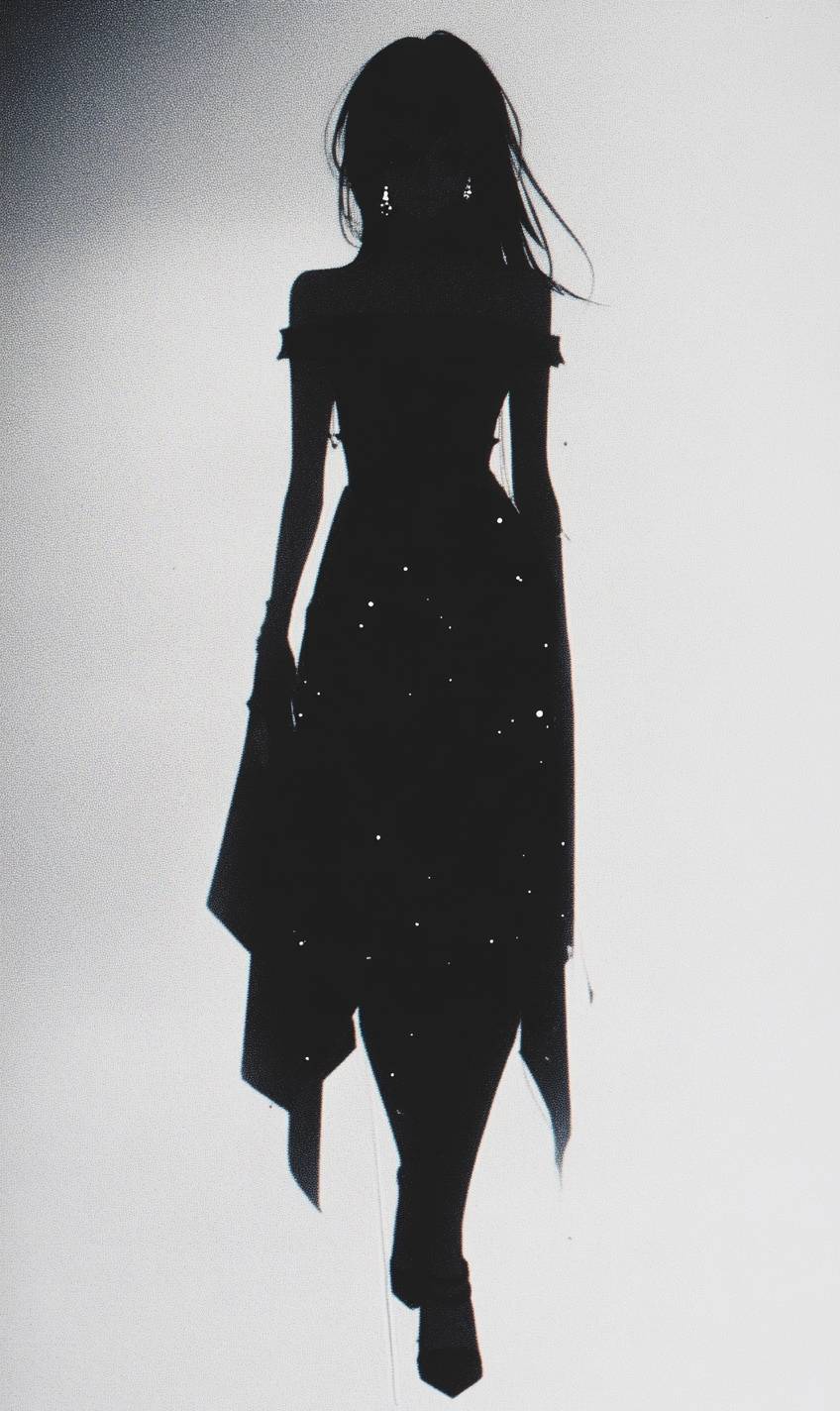 Anime female character, elegant evening gown, off-shoulder design, sparkling details, high heels, delicate jewelry. --sref 2813629345 --ar 3:5