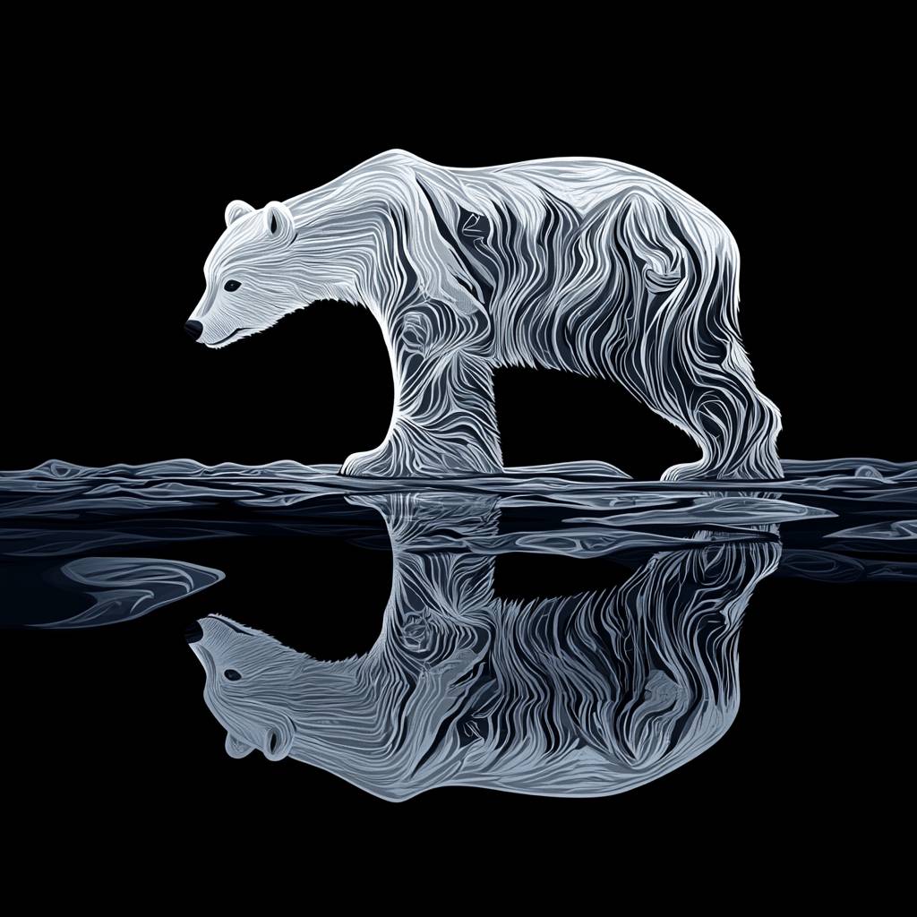 2d, vector, POLAR BEAR, BLACK AND WHITE, SIMPLE, BOLD, OUTLINE, ICON, STANDING ON FLOATING ICE, LOGO, SYMBOL, LARGE --v 6.1