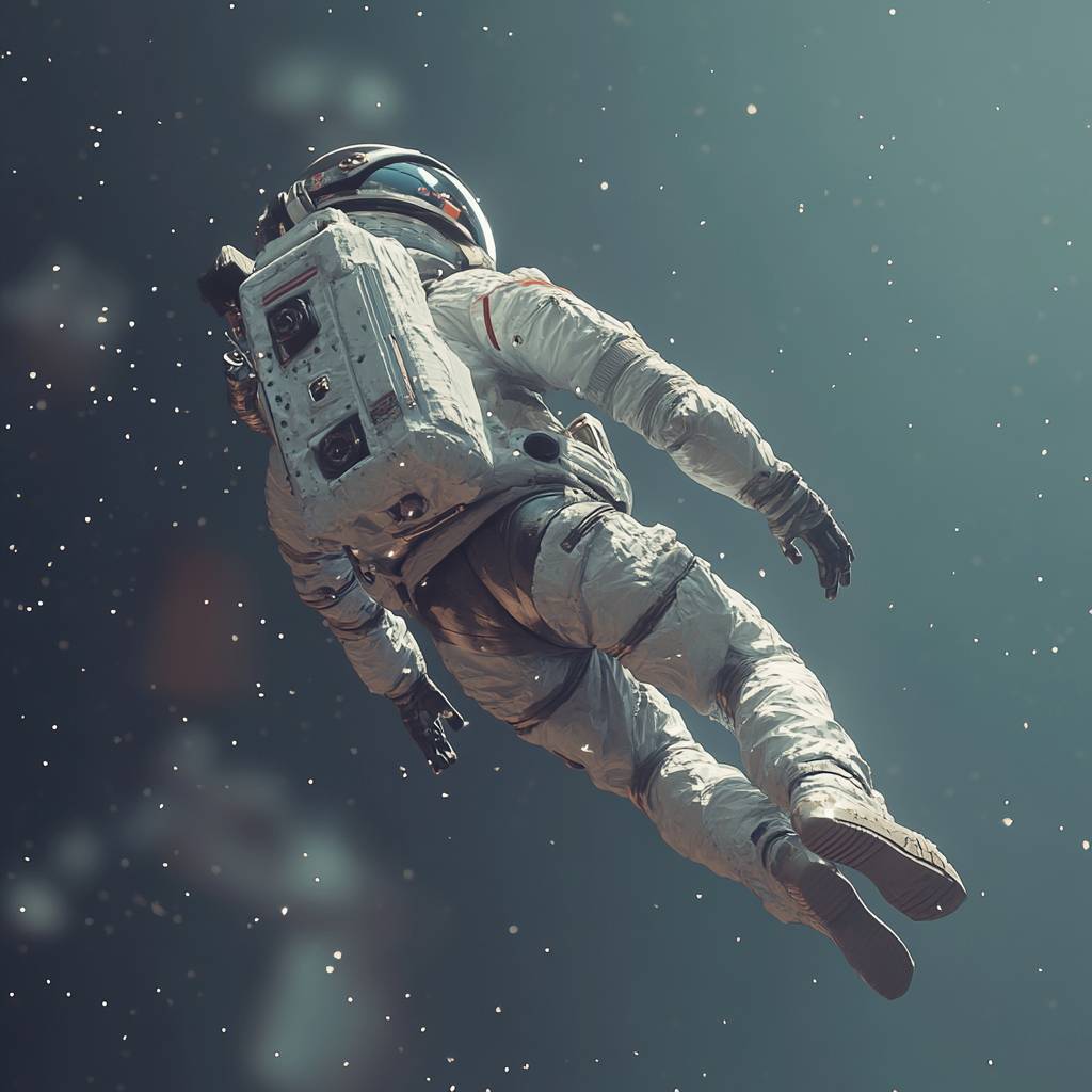 An astronaut drifting in space, with a back view, three-dimensional texture, simple colors, OC rendering, realistic --v 6.1