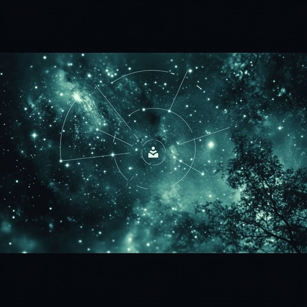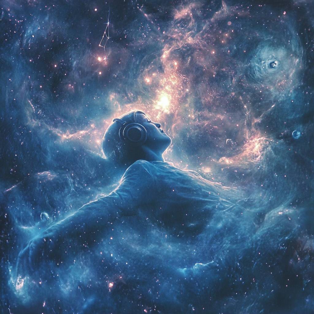 spotify logo with picture of space, space between us. cool colouring, no text. --chaos 100 --style raw --stylize 1000 --weird 3000 --v 6.1