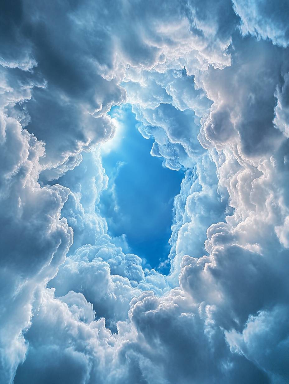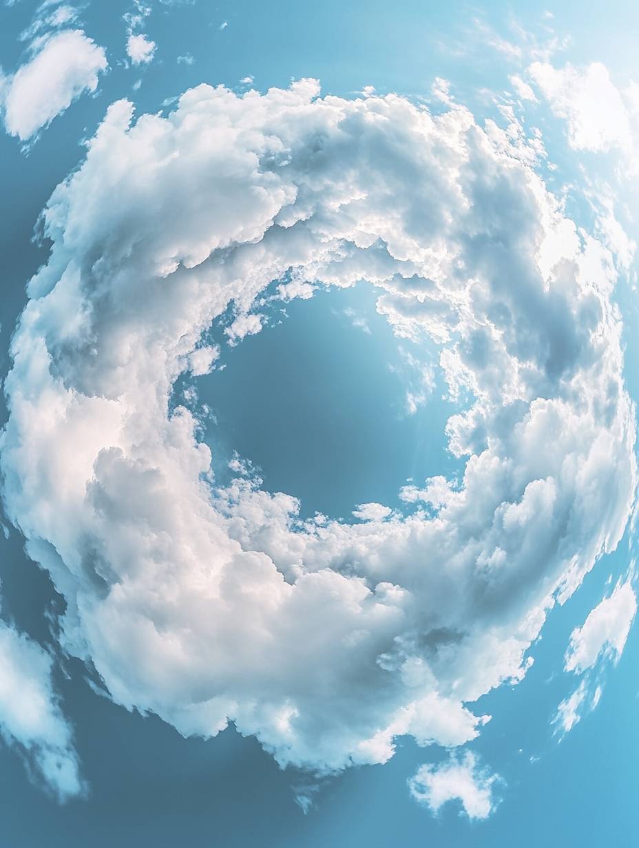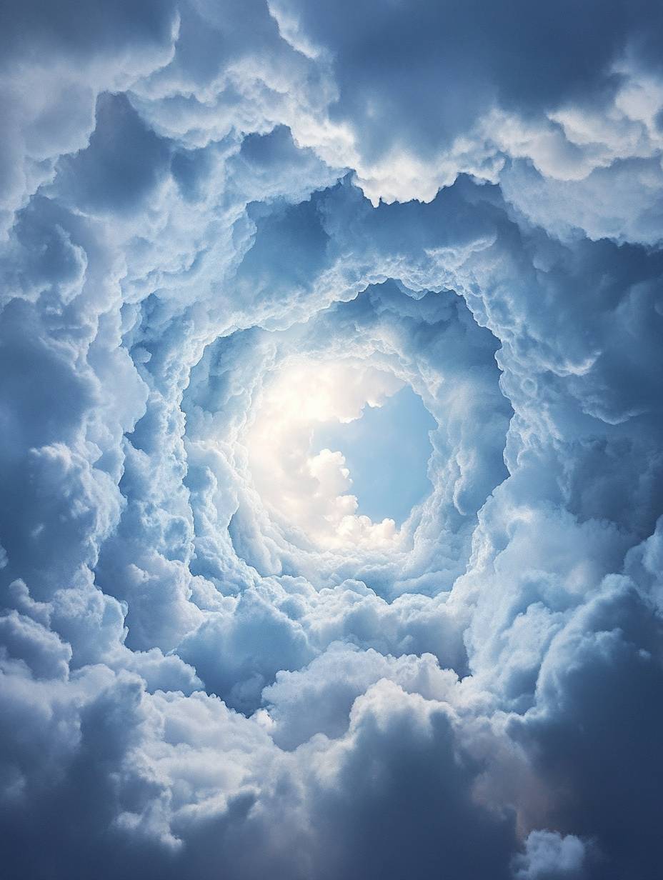 Dynamic rotation Rotating clouds surround the internal perspective of the cloud A perspective shot was taken from above to highlight the details. it features high-definition photography and a wide-angle lens. UsingC4D software for rendering Looking up --ar 3:4 --v 6.1