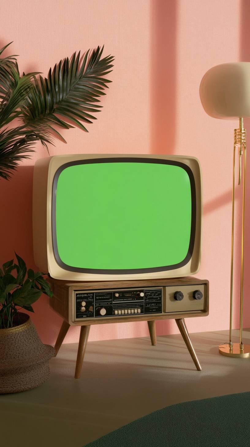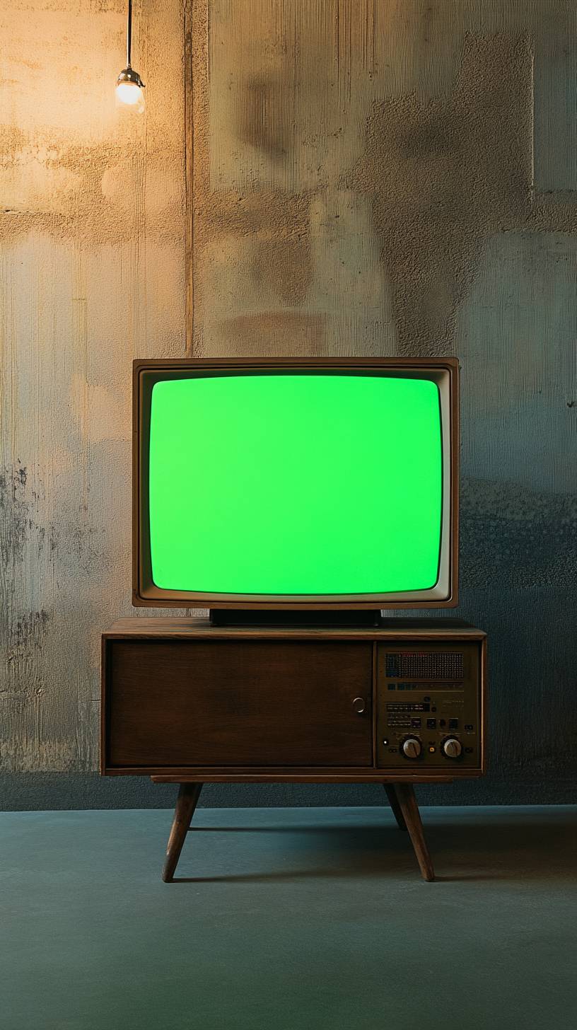 old TV mockup, year 2003 poland, frontal tv screen with green screen, 00's vibe --ar 9:16 --style raw --stylize 50 --v 6.1
