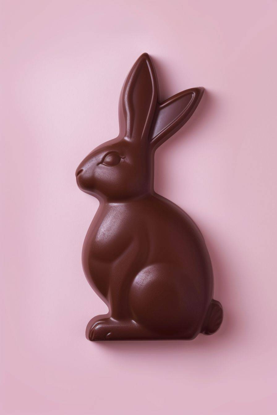 abbit shaped chocolate bar, hyper realistic, isolated on pastel pink background --ar 2:3 --v 6
