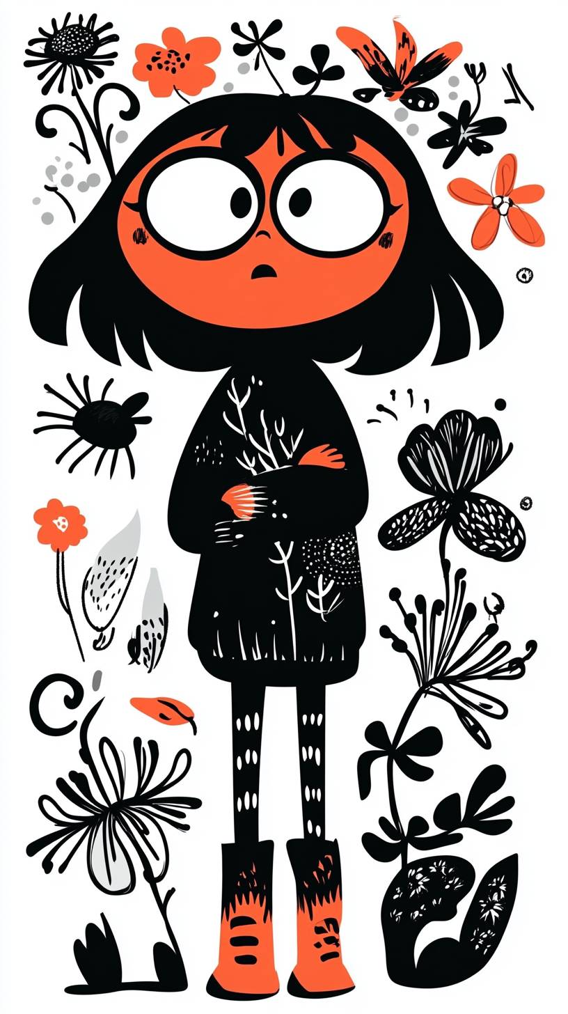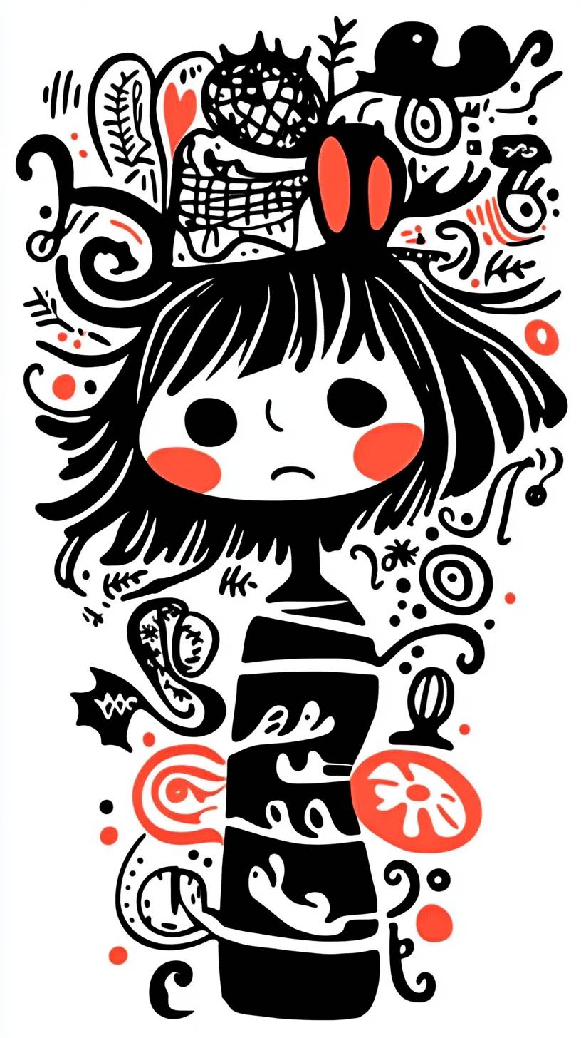 Cute doodle girl --ar 9:16 --profile 712vdzx --v 6.1