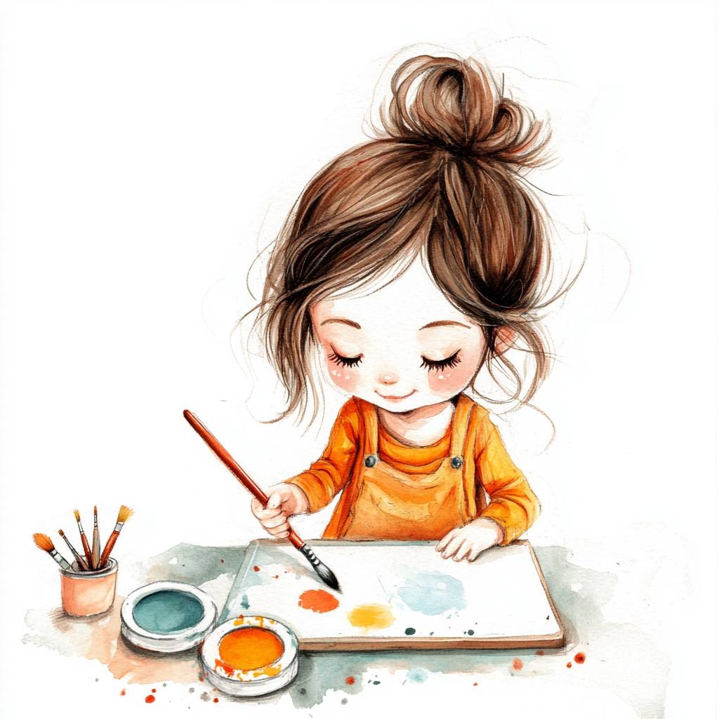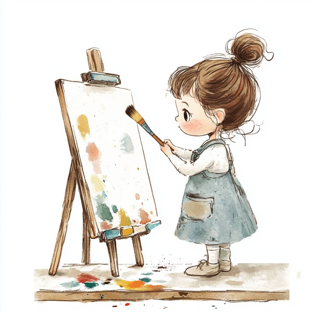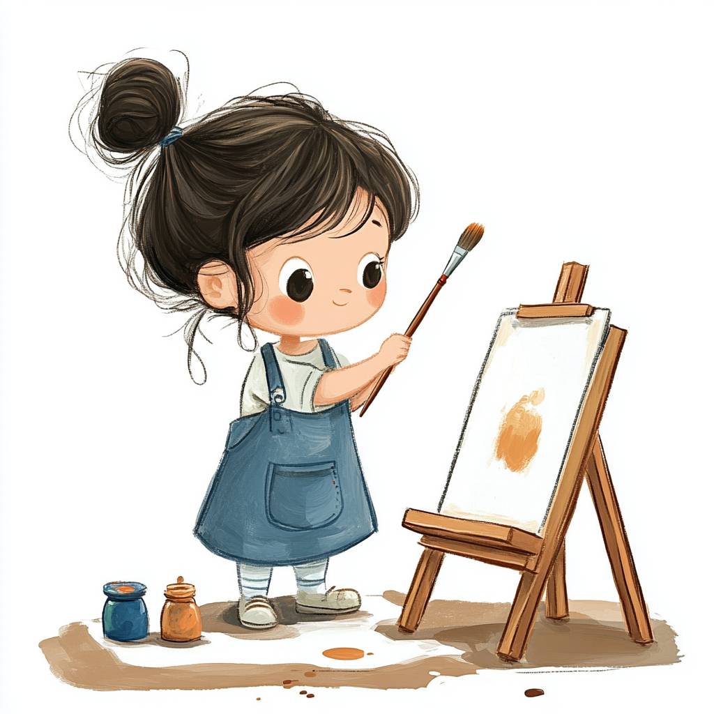 Illustration, girl, little painter, white background image. --v 6.1