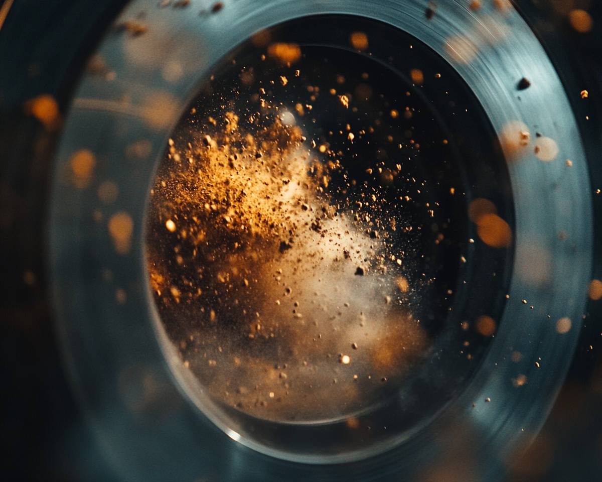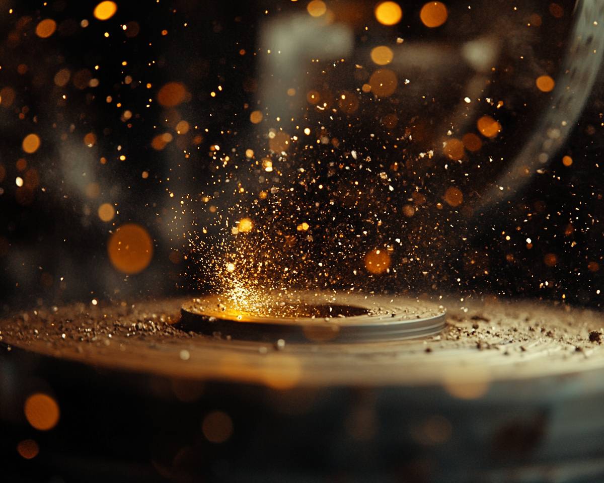 Frames Macro Zoom, Immensly Detailed Closeup low angle super zoom of dust and dirt coming off a spinning wheel, motion blur, anamorphic lense flares , hero moment, golden ratio aesthetics, muted showreel color grading, visual storytelling --v 6.1 --ar 5:4 --s 250