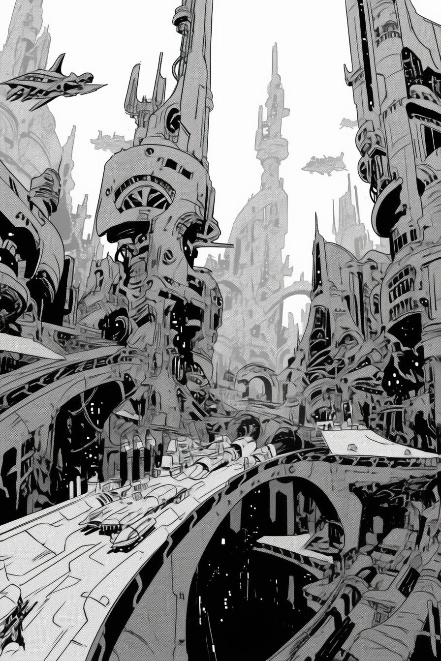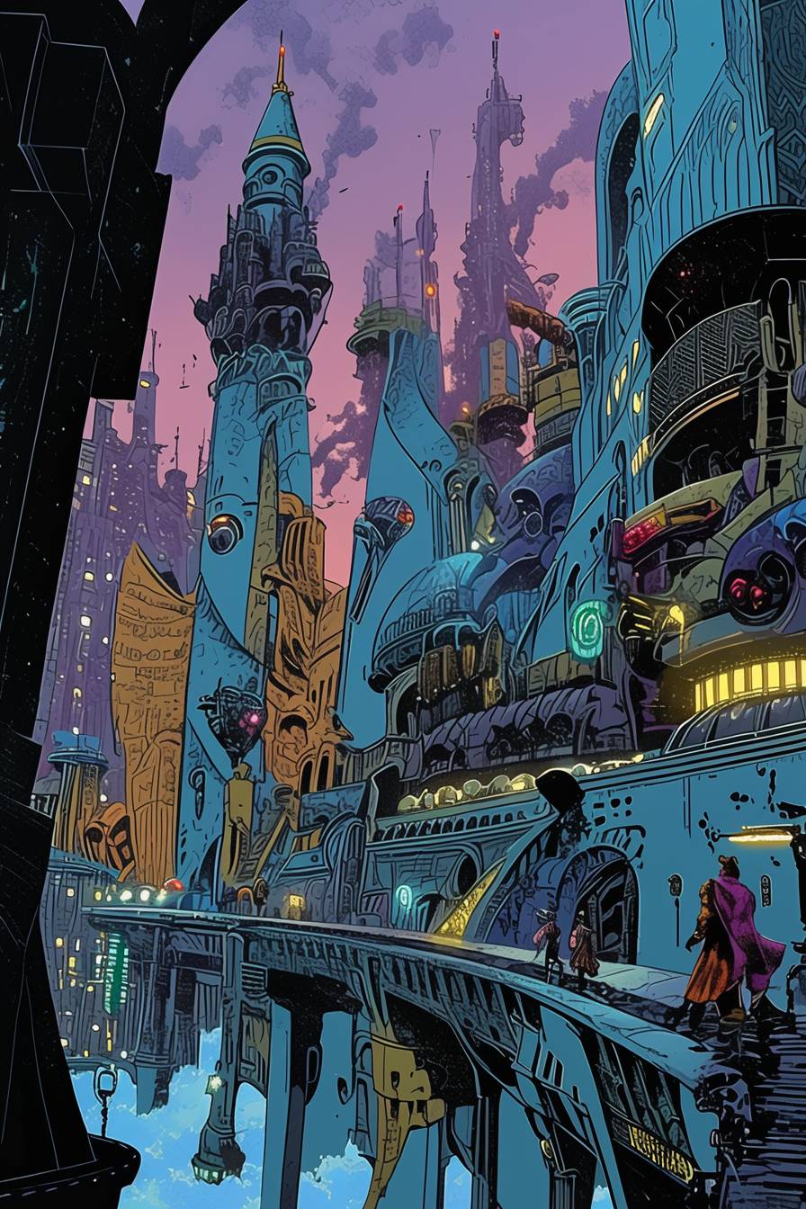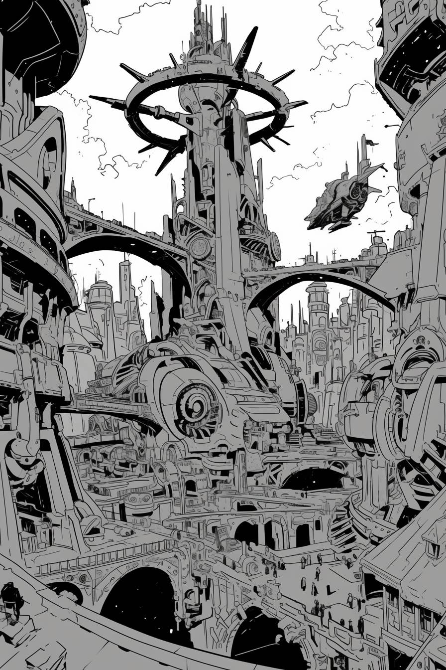 manga-style urbanscape of 19th century steampunk megacity --sref 2942895933 --niji 6 --ar 2:3 --style raw