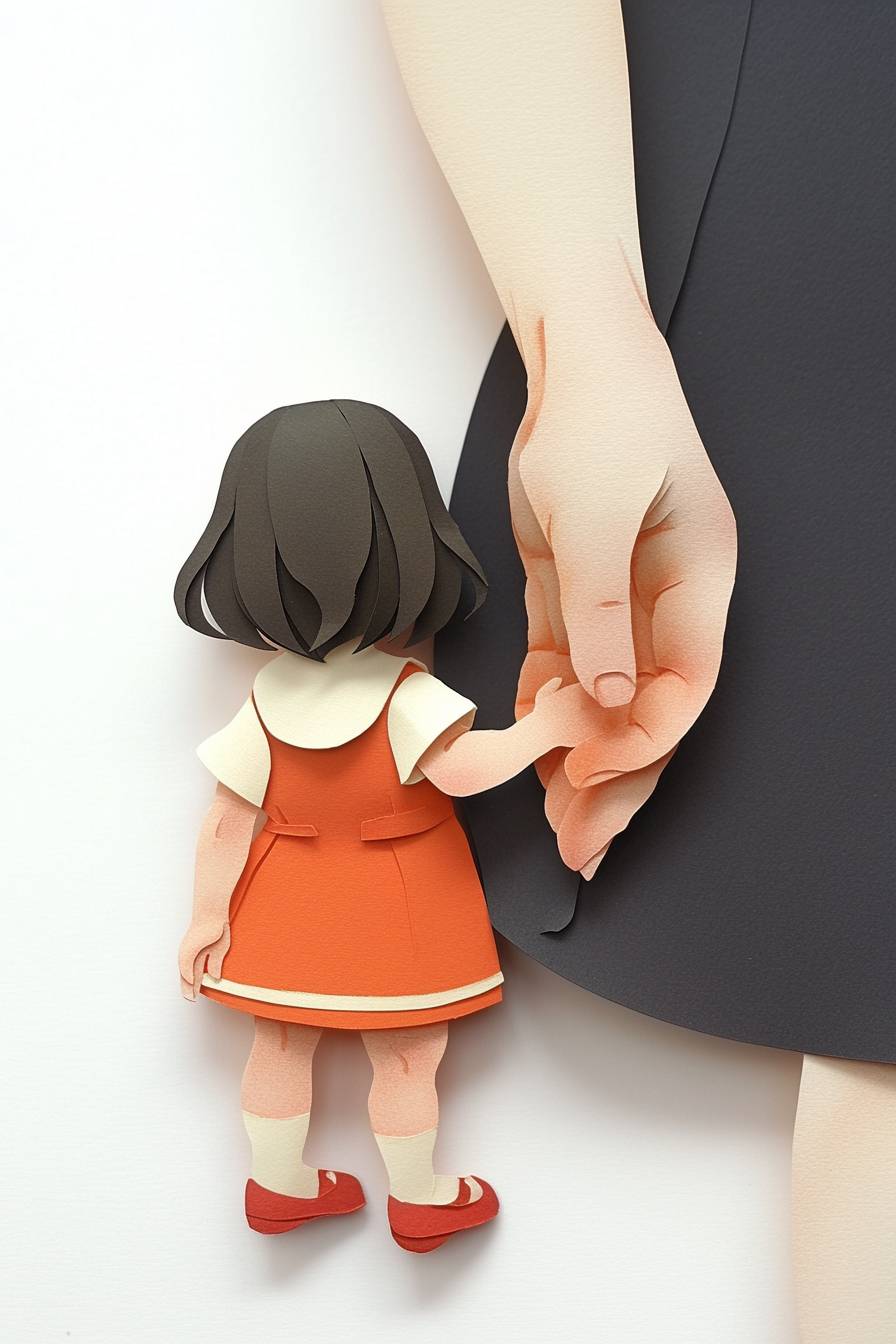 papercraft style, a little child is holding hands with mom --ar 2:3 --niji 6 --style raw