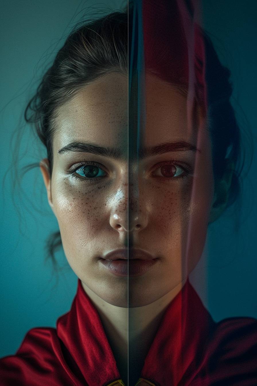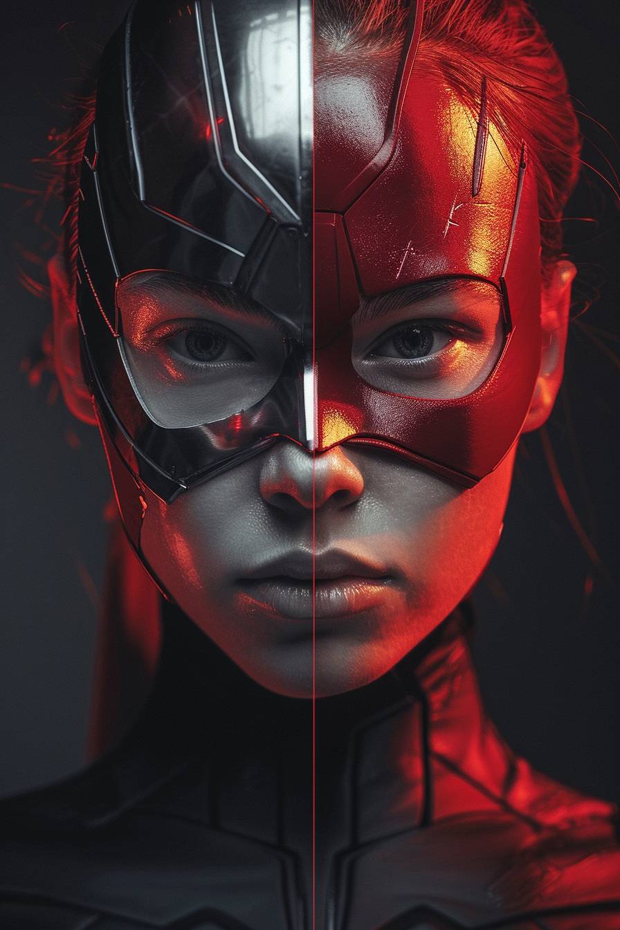 superhero versus portrait. Symmetrical composition --v 6.0 --ar 2:3