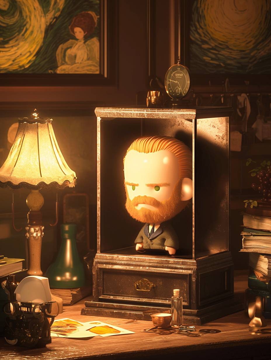 Popmart blind box,a self-portrait by Van Gogh,chibi, soft lighting,OC rendering, super delicate, C4D, 8k --ar 3:4 --niji 6 --style raw