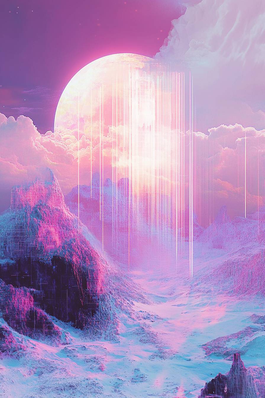 [SUBJECT] in Chromatic Dreamscapes, an ethereal vaporwave scene with floating geometry and iridescent cyber auras. A pastel [COLOR] and [COLOR] palette enhances glitch distortions, blurring existence and memory. --ar 2:3 --v 6.1 --style raw