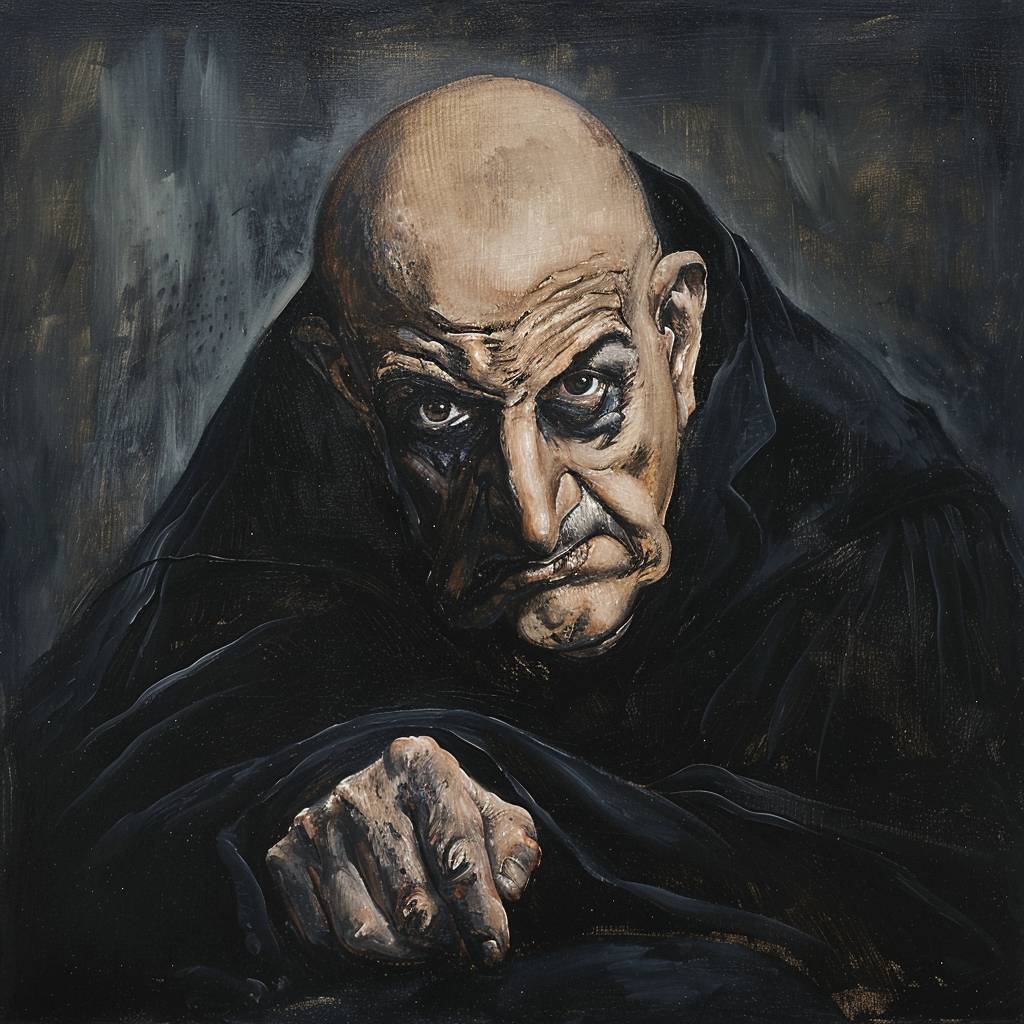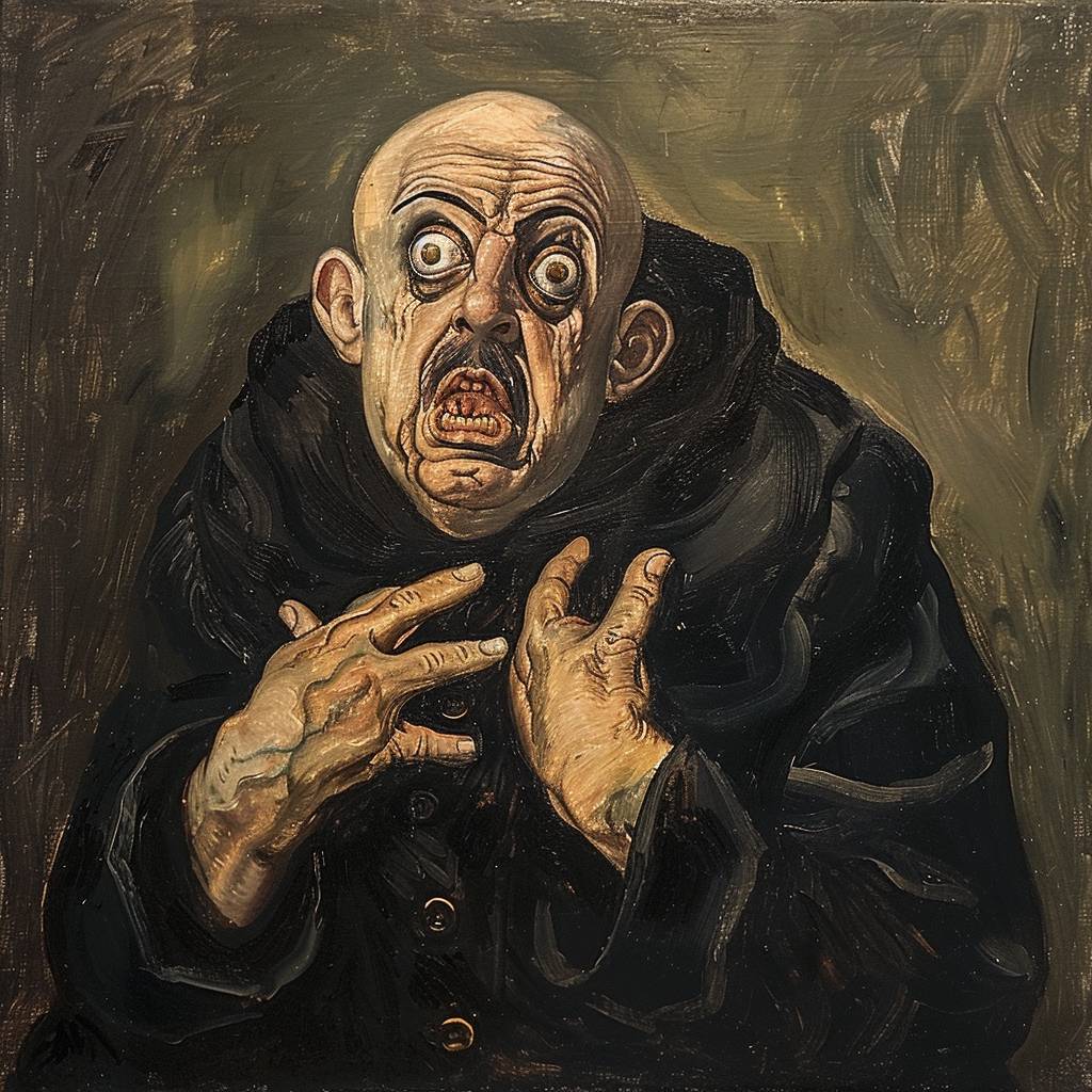 一幅由埃尔·格列柯创作的画作,描绘了《亚当斯一家》中的费斯特叔叔。