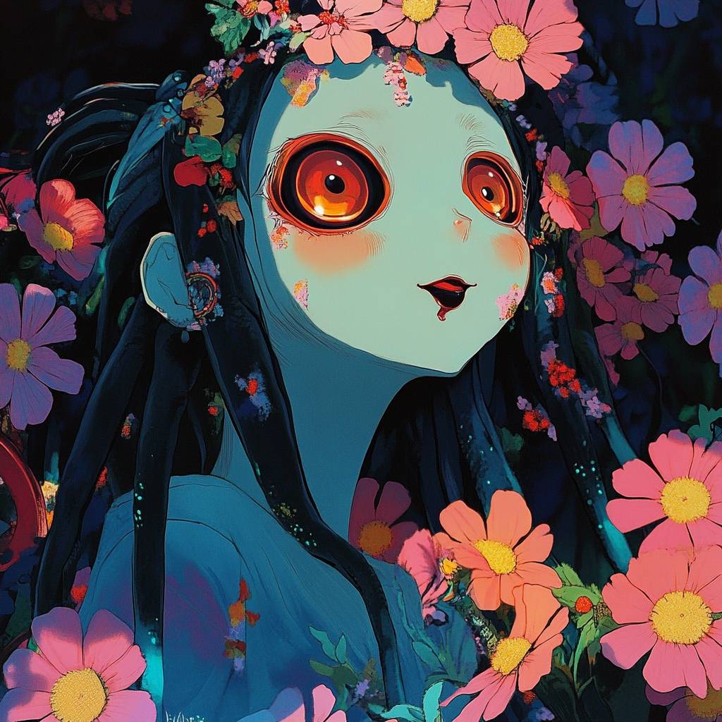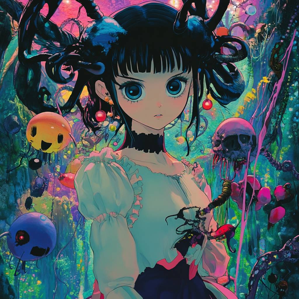 新海诚风格,色彩饱和,清新的风格。天空中,华丽的白云。初夏的阳光斜射在石榴树梢,炙烤着院子里的青石板。一位穿着浅绿色布裙的小女孩坐在白蜡树下,一个竹篮铺在她的腿上。篮子里,她数着并收好她的初夏鸡蛋,这些鸡蛋用五彩丝线包裹着。有些红的像小灯笼,有些绿的像翡翠珠子,放进了一个编织的蛋笼里。她脚下的竹垫上 curled up 一只白猫,偶尔尾巴尖扫过地面。突然,它的耳朵竖起来了——蝉鸣从栅栏外的黄瓜架上传来。随着第一声“蝉鸣”的响起,它已经窜到架子下,挠着藤蔓,摇摆着,惊动了刚发芽的黄瓜,让晨露滴落在它雪白的背上。