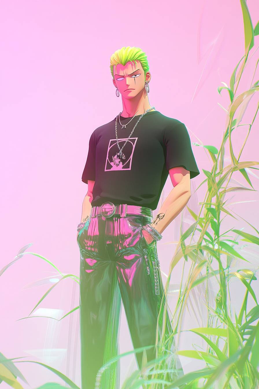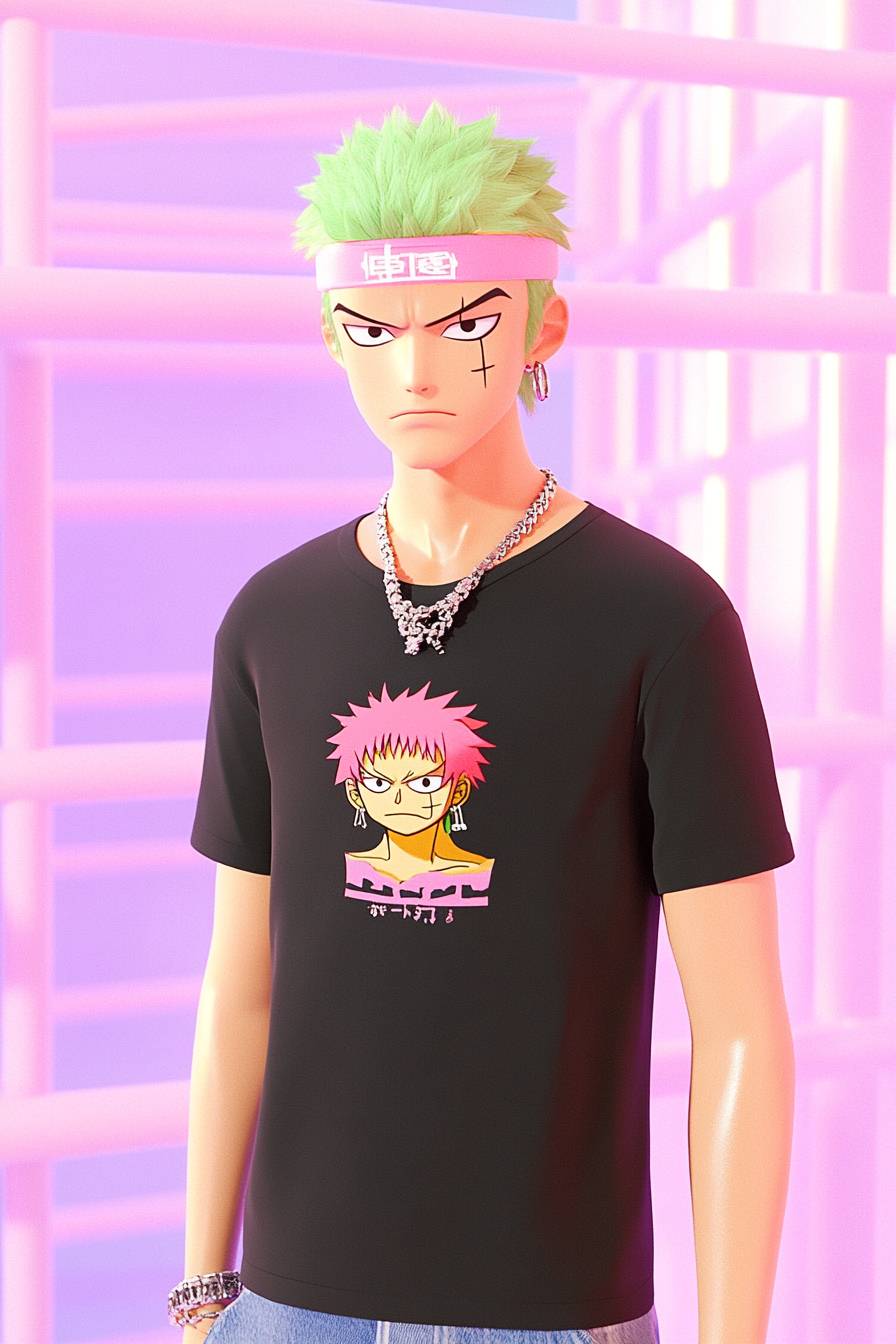 Zoro Roronoa is wearing a black t-shirt --sref 1348322374 --ar 2:3 --v 6.1
