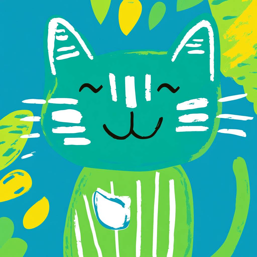 simple minimalist kid's hand-drawn crayon cat cafe logo --sref 44000 --v 6.1