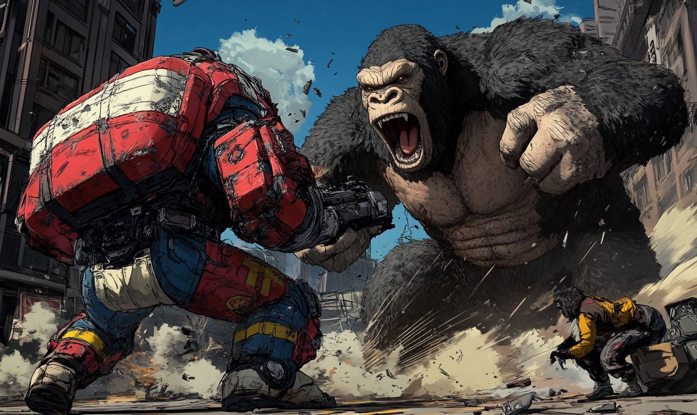 Ultraman vs. King Kong. --sref 3917483306 --p 9crcw4d --c 20 --sw 1000 --s 1000 --ar 5:3