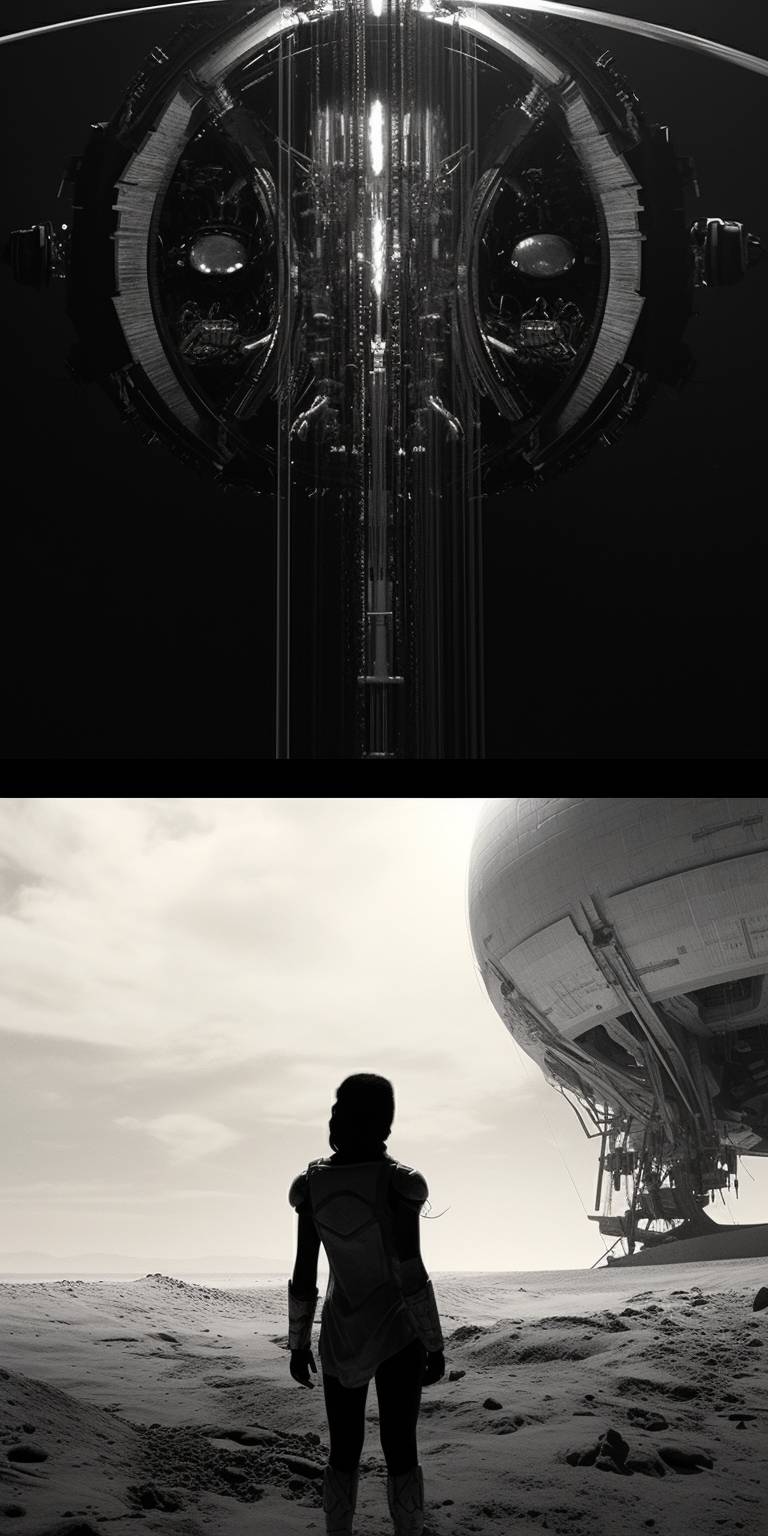 Who would have believed that in their search for spice they would unearth long buried ancient machines that have the power to destroy us all. Some say they have now started to go rogue. Black and white science fiction movie directed by David Fincher --ar 1:2 --v 5.2