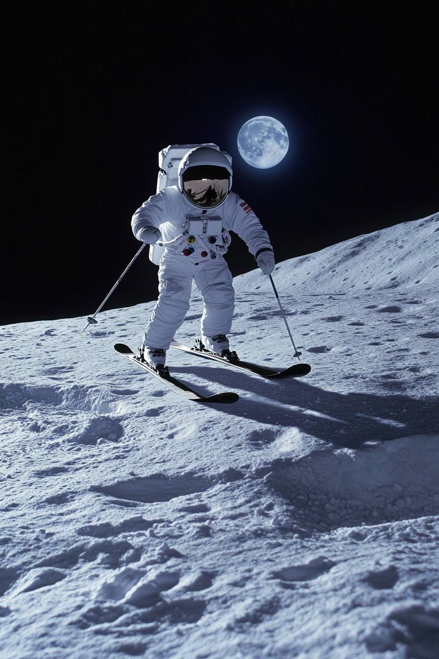 a skier on the moon --ar 2:3 --profile 1jzvx41 hay8kid --v 6.1