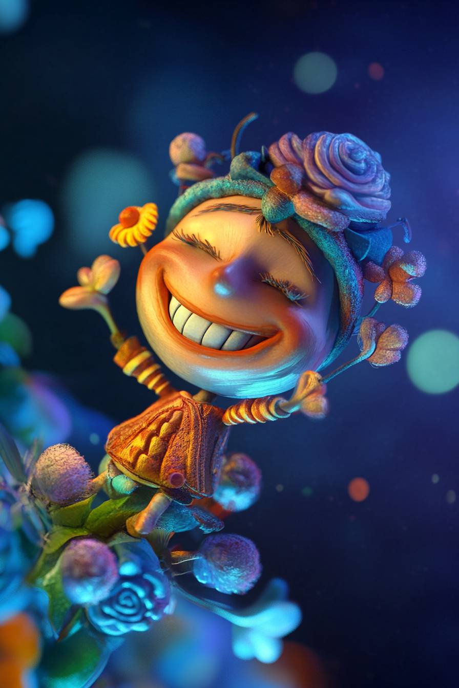 可爱的角色,满口笑容,色彩柔和