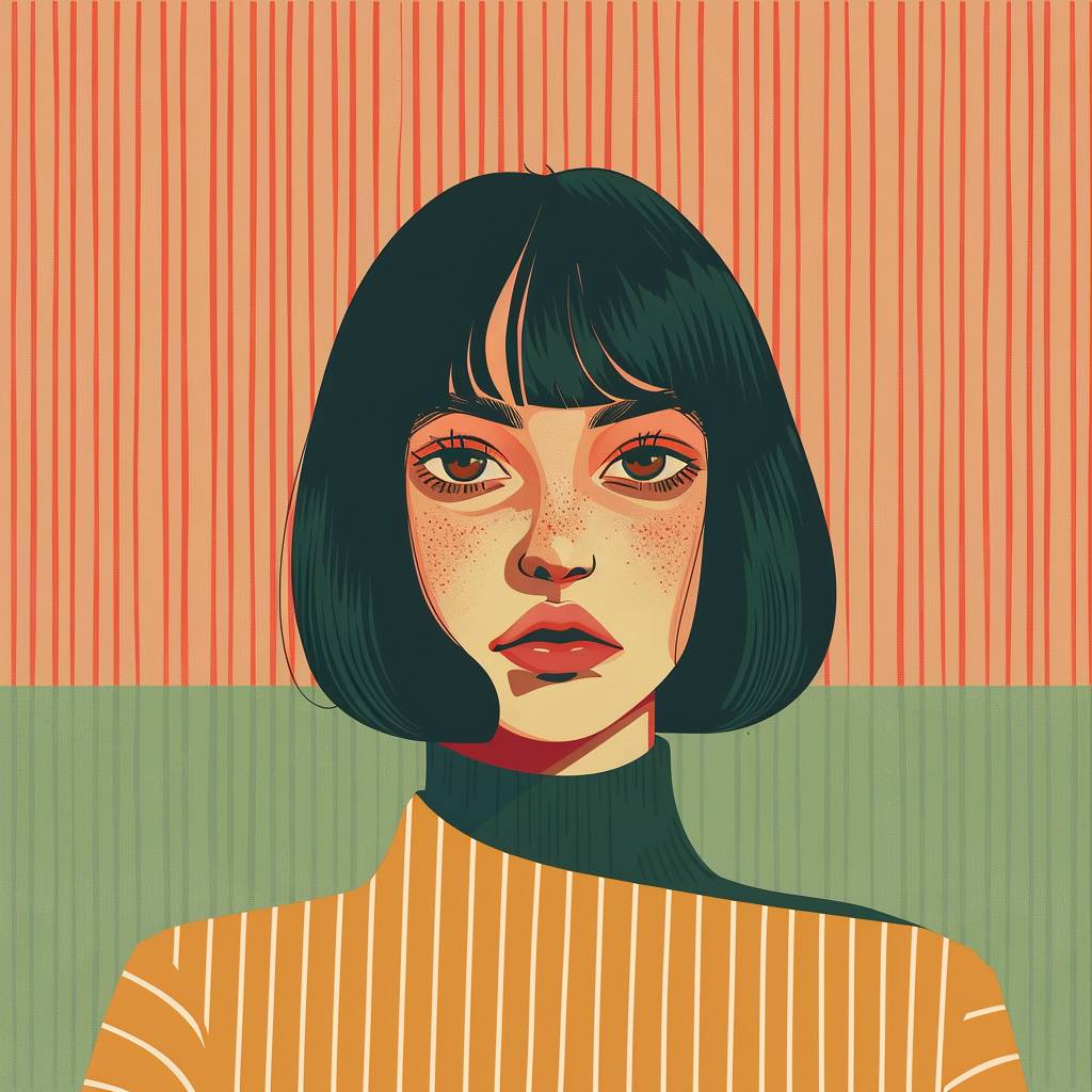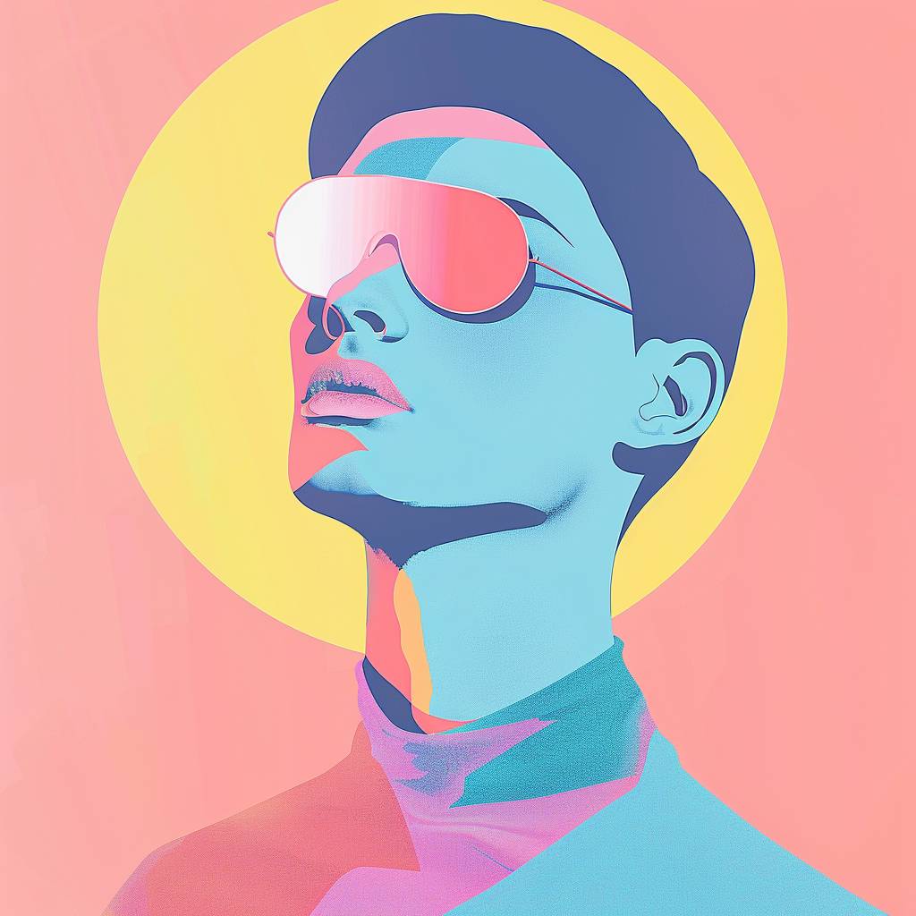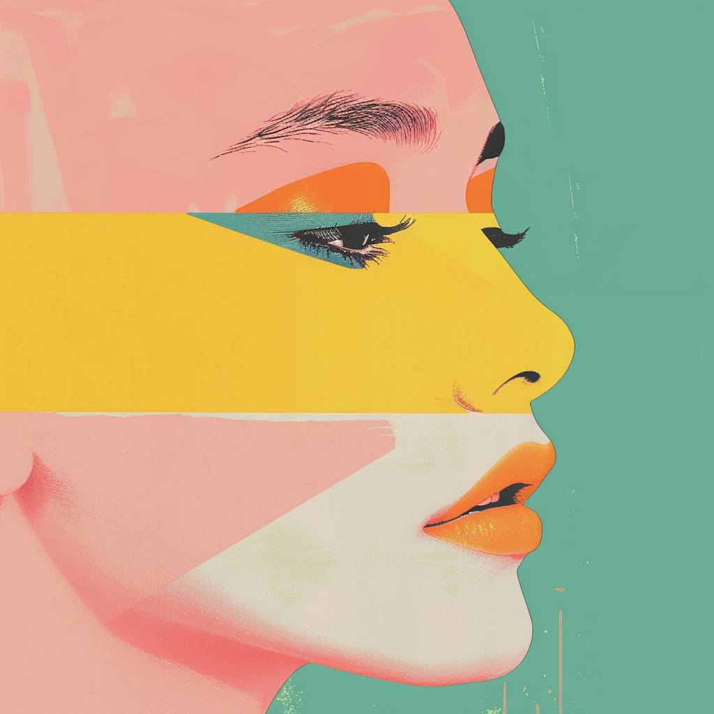数字艺术风格,粉彩色调,简单背景,平面插图,特写,正面视角,漫画风格,拼贴,实验性作品