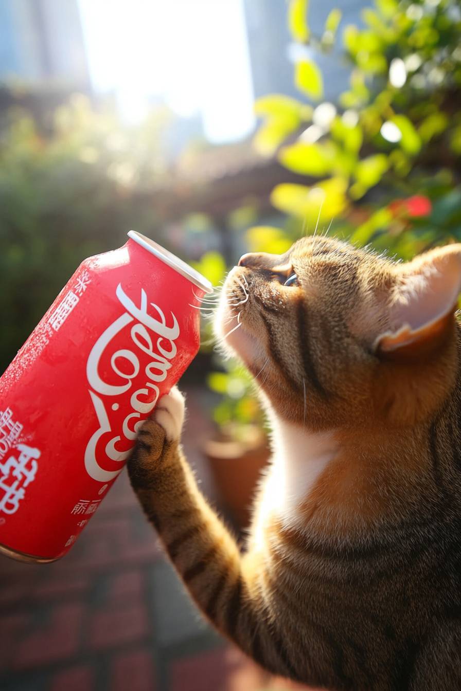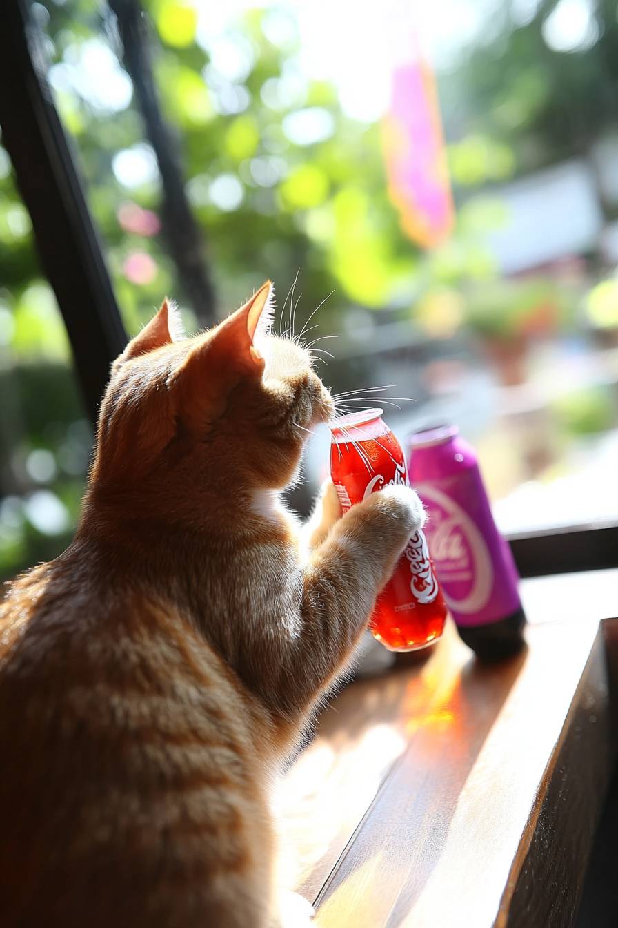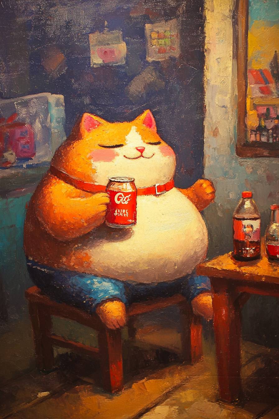 The fat cat drinks cola. --sref 75473276 --ar 2:3 --v 6.1