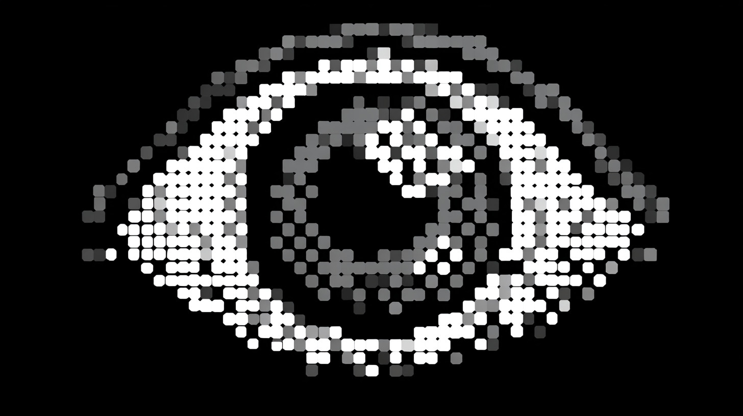 flat pixel art vector graphic of an eyeball on a solid black background, black and white --ar 16:9 --stylize 0 --v 7.0
