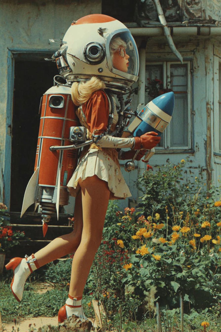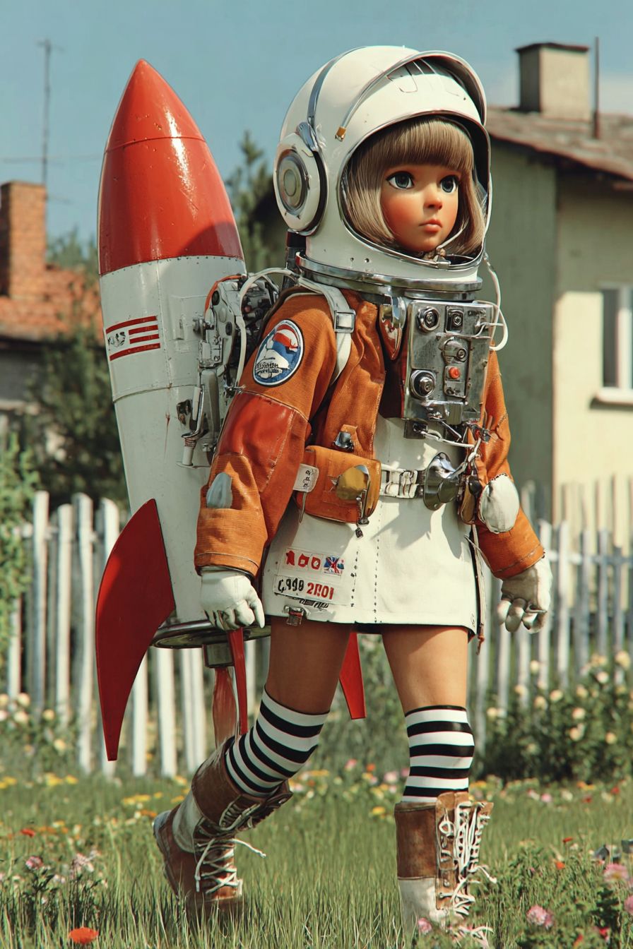 Anime superhero girl launching toy rocket in a quaint suburban garden --sref 2379995174 --v 7.0 --stylize 400 --profile ekl9zix --ar 2:3 --sv 4