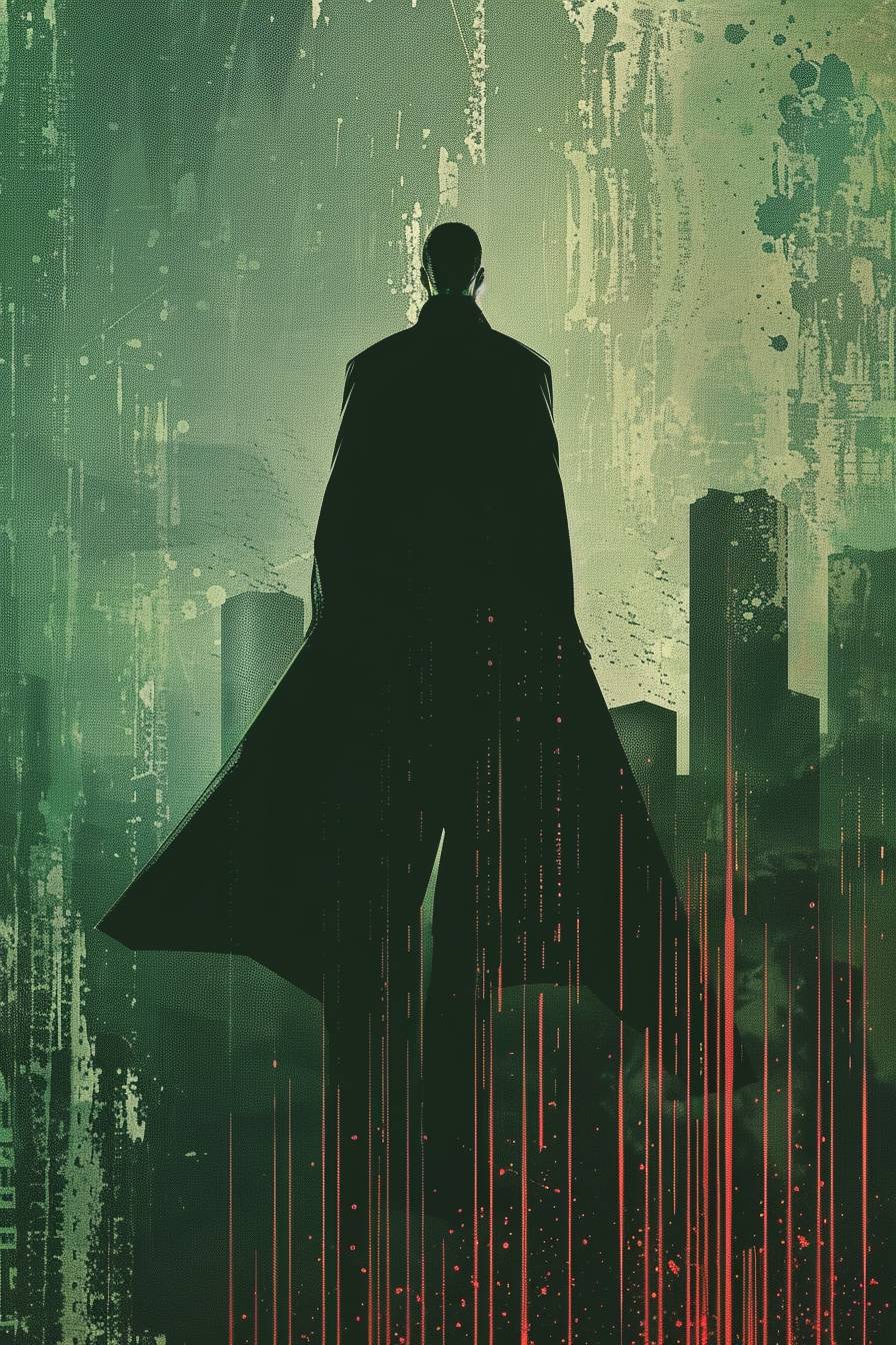 为《黑客帝国》创作的电影海报,采用索尔·巴斯的风格。