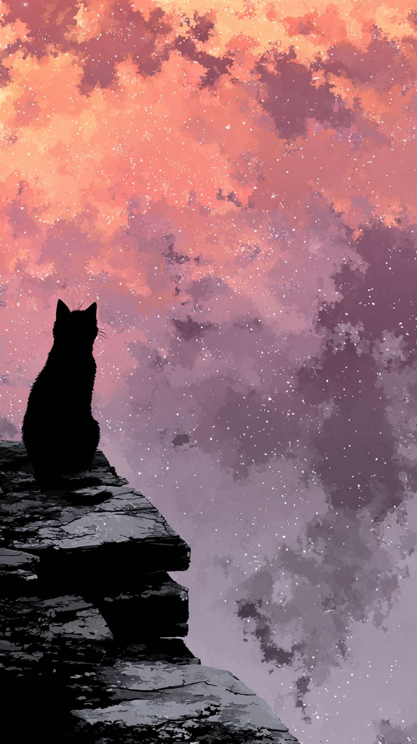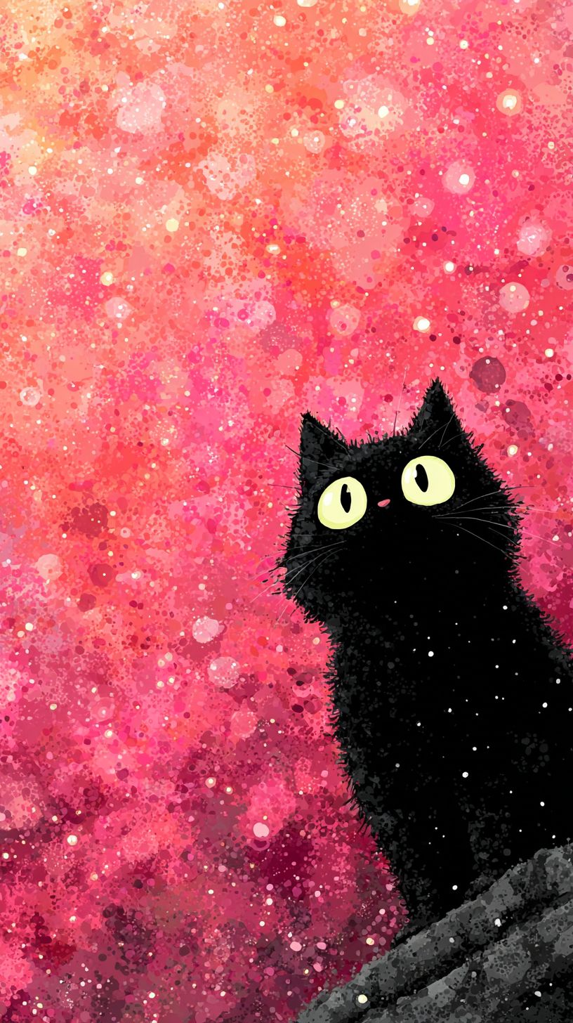 A background with space to write text in the middle on the theme of a black cat Inspired by Studio Ghibli films, magical and warm atmosphere, pastel colors, cinematic composition, hand-painted textures, 4K --ar 9:16 --stylize 750