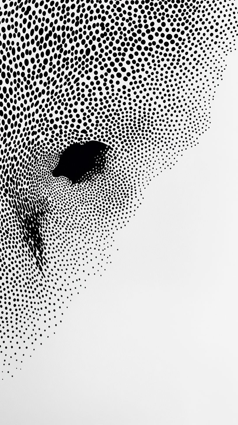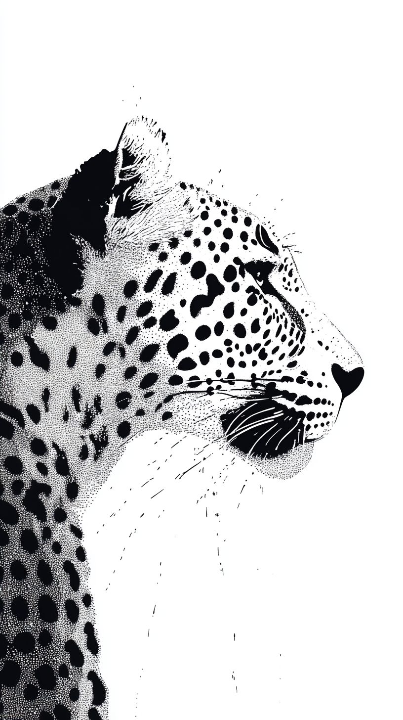 Leopard print, minimalist dot art in the style of Matisse and Yayoi Kusama, white background, monochrome --ar 9:16 --v 6.1