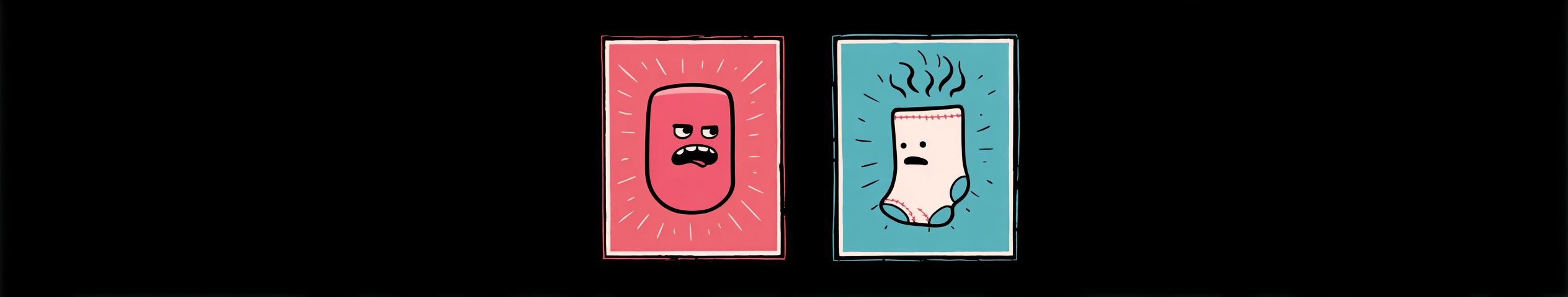 trading card, minimal design, simple colors, funny smelly sock, disgusted --ar 21:4 --v 7.0