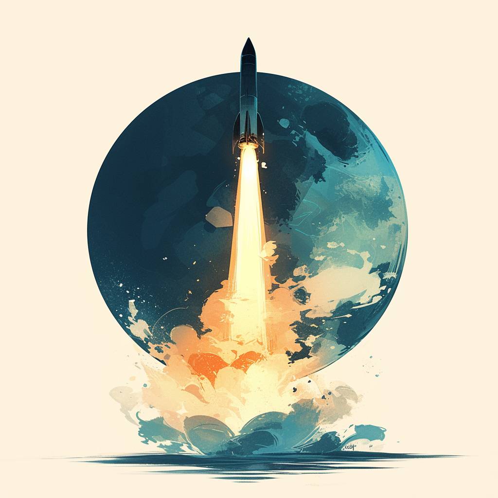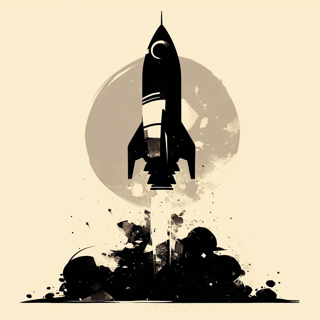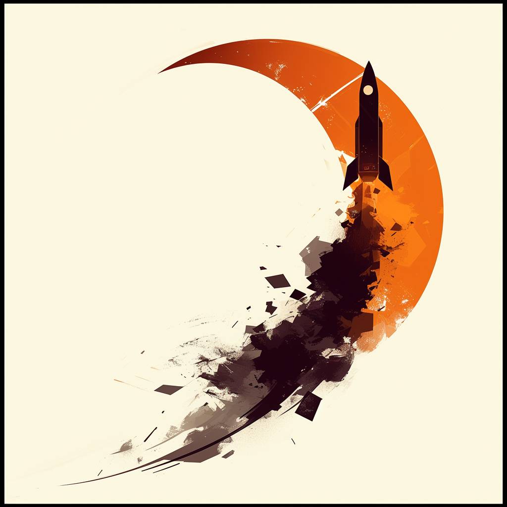 Design a minimal logo featuring a Rocket in Black on a Cream background. Include Geometric Shapes as an additional design element --s 750 --niji 6